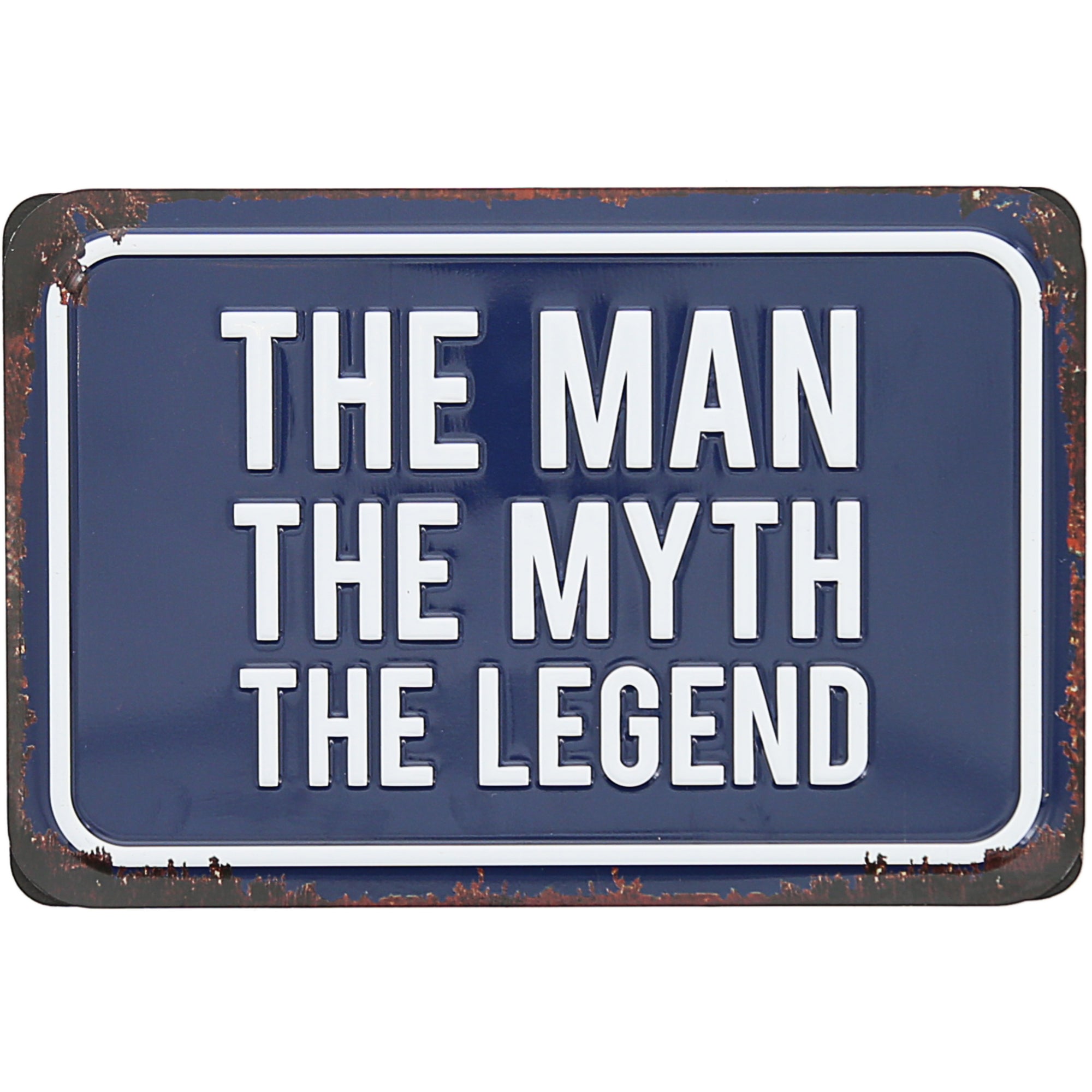 - IN-HOUSE DESIGN: The rust-brown aged finish accompanies the navy blue background, along with the risen embossed white border and "The Man The Myth The Legend" sentiment. Excellent for displaying in a garage on a toolbox, on the fridge in the kitchen, in a man cave, or a home/work office setting.