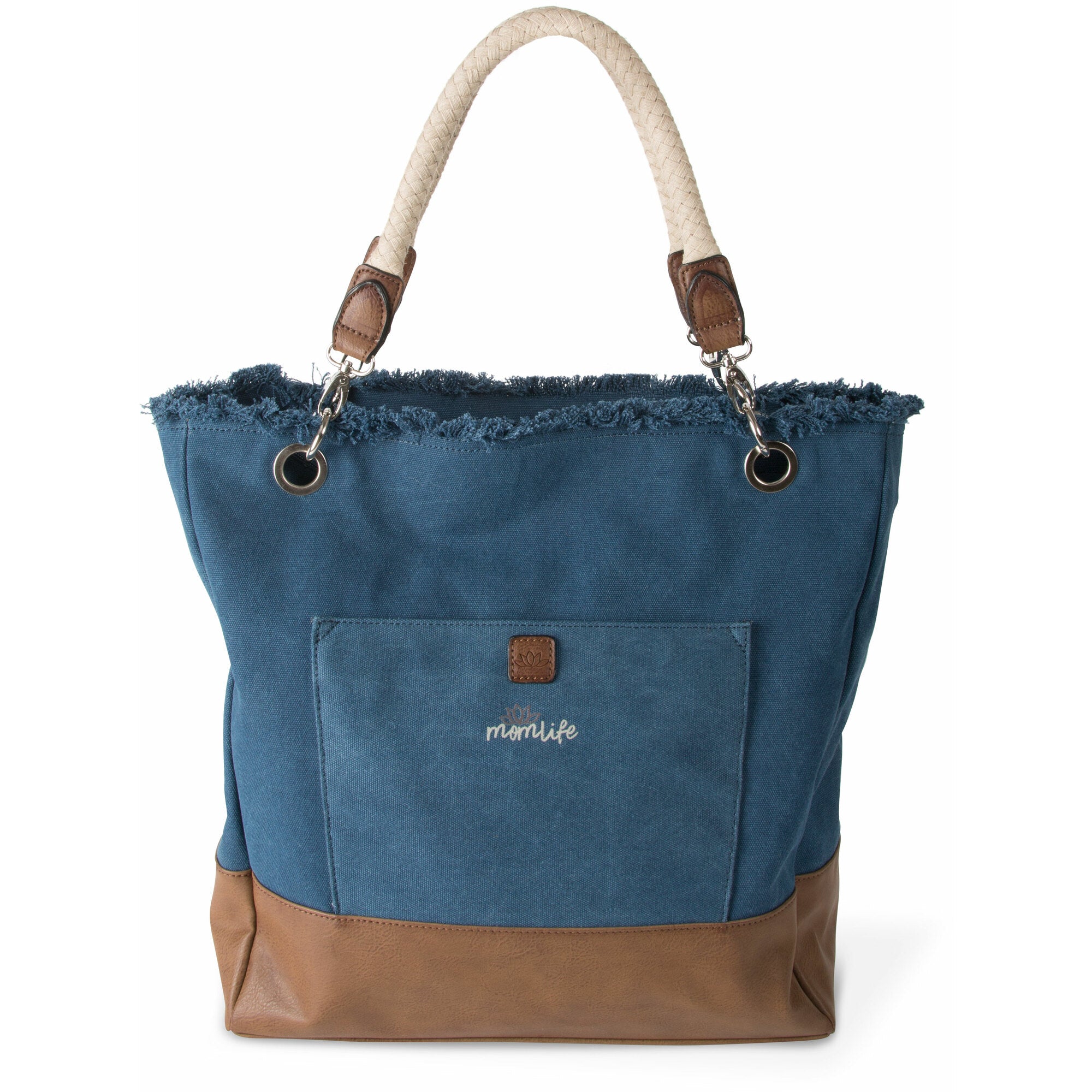 - IN-HOUSE DESIGN: "Mom Life" text and lotus flower icon are both sewn into the front of the bag.