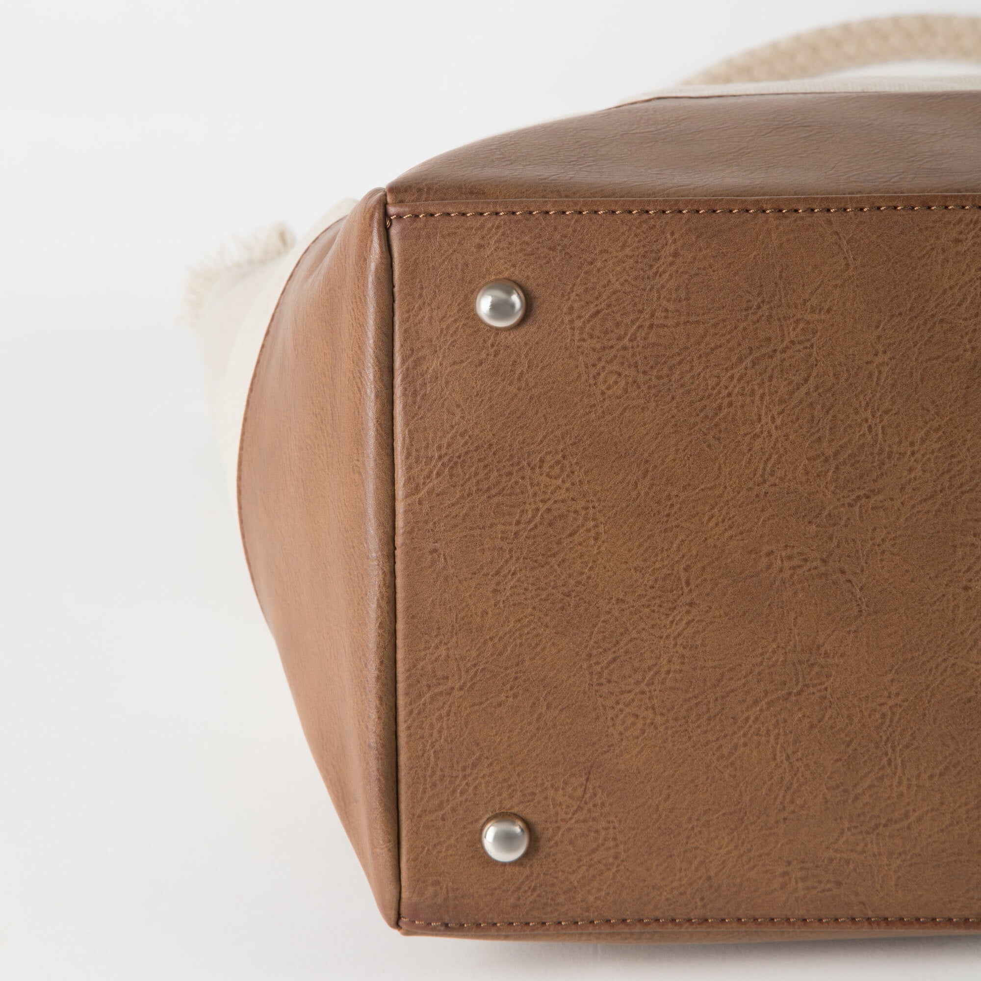 - PREMIUM QUALITY: Large tote bag with metal feet comes packaged in a plastic polybag, is made from canvas and vegan leather, and features two rope handles and both zipper and snap closures.