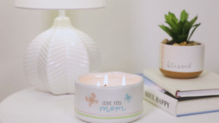 - IN-HOUSE DESIGN: The new & innovative candle offers a unique message for your loved one within the wax as time progresses. You will see cursive written "You Are Amazing" sentiment after about 10 minutes. As you watch, the entire decal with a horizontal striped design will appear after 60 minutes. Then, the message will hide again and reappear with each burn. The front of the candles has a simplistic springtime "Love You Mom" decal accompanied by two butterflies & striped wrap-around patterns on a matte white exterior handmade feel vessel with a glossy interior.