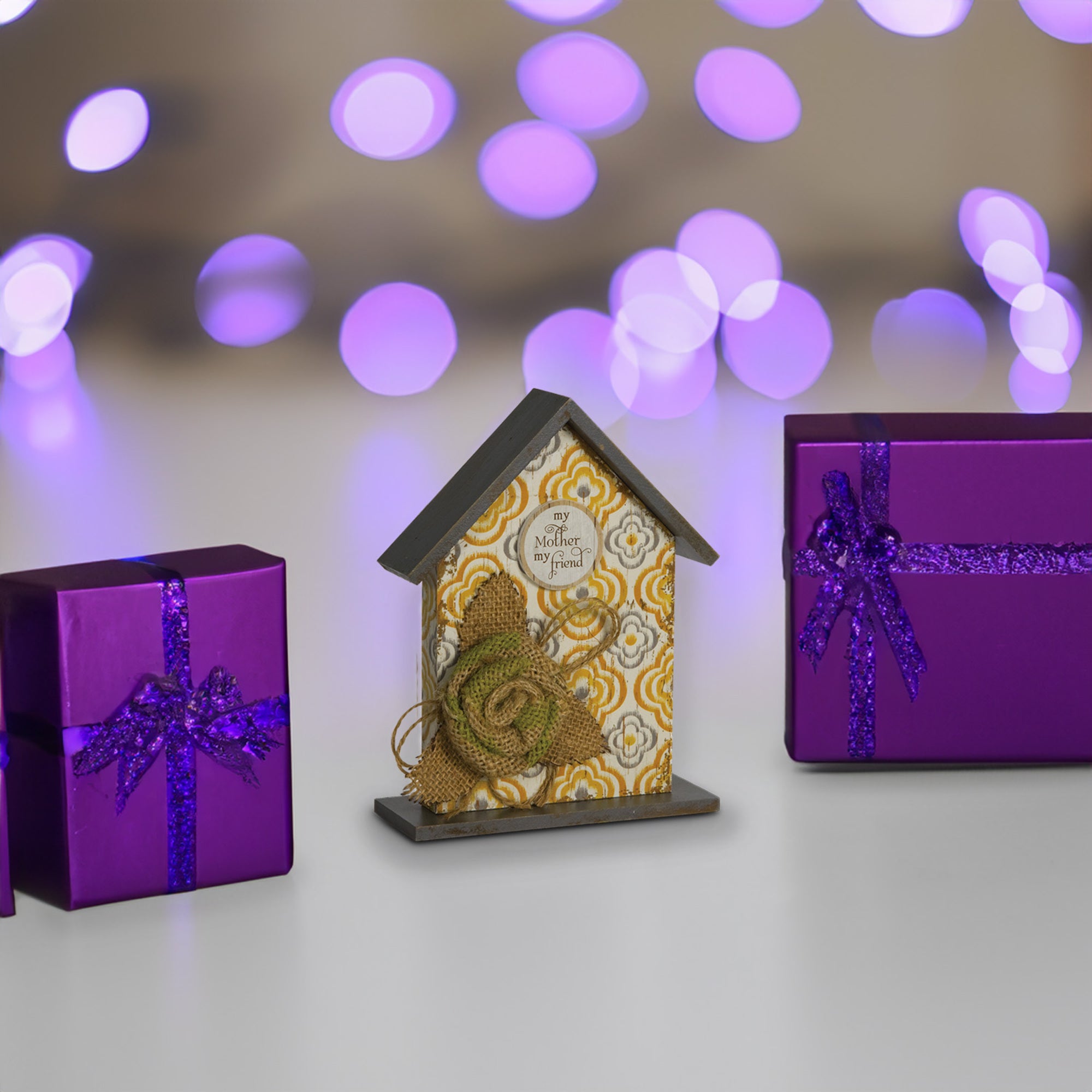 • PREMIUM QUALITY: This 7-inch birdhouse-shaped plaque is made from high-quality MDF, metal, burlap, and paper, ensuring durability and a long-lasting keepsake. The rustic, distressed wood finish adds a charming, vintage touch, while the beautiful embossed flowers in rich jewel-tone colors make it a standout piece. Packaged in a printed gift box, it’s ready to be presented to your loved ones, making it a thoughtful and elegant addition to any home decor.