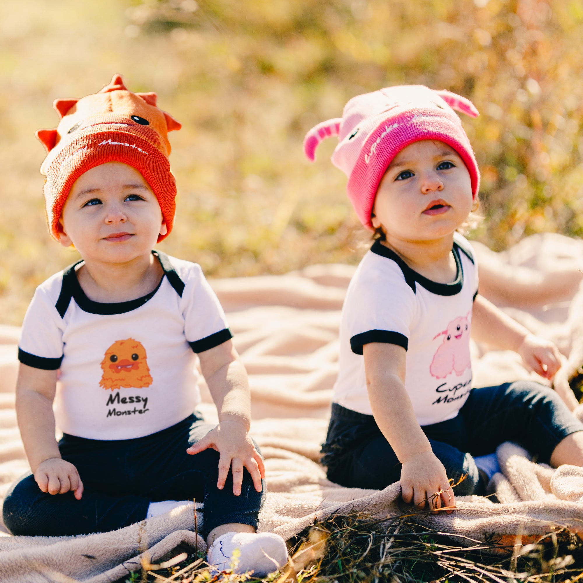 - IN-HOUSE DESIGN: Black trimmed edges go around the neck, arms, and thighs. The large fuzzy messy-haired, dirty-faced monster is accompanied by "Messy Monster" screen-printed sentiment on the front center of the bodysuit. Itch-free tagless sizing is printed on the interior collar.