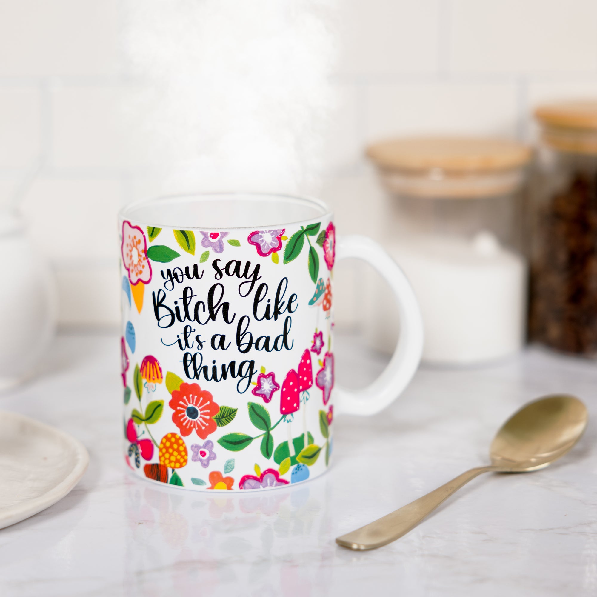 - IN-HOUSE DESIGN: The phrase "You say Bitch like it’s a bad thing" is framed by a whimsical floral design, blending humor with bright, eye-catching colors. The raised hand-painted accents add texture and depth to the design, making it both fun and functional. Whether you’re using it for your morning coffee or as a decorative display, this mug is sure to bring a smile to your face.