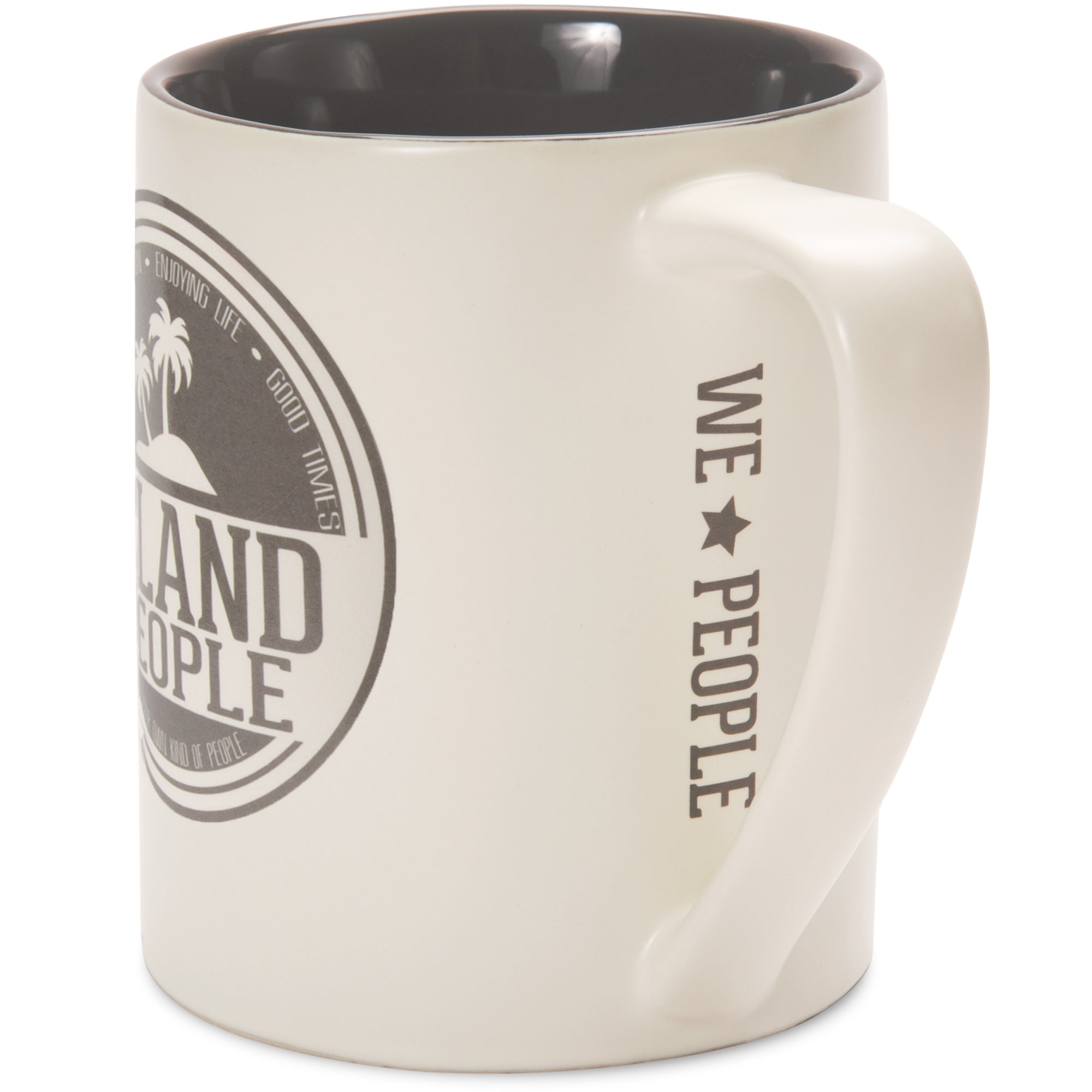 - IN-HOUSE DESIGN: "Island People" decal, including "Sunshine - Relaxation - Enjoying life - Good times" text, is printed on both sides of the mug, as are the accompanying palm tree logo and "Be Your Own Kind Of People" text.