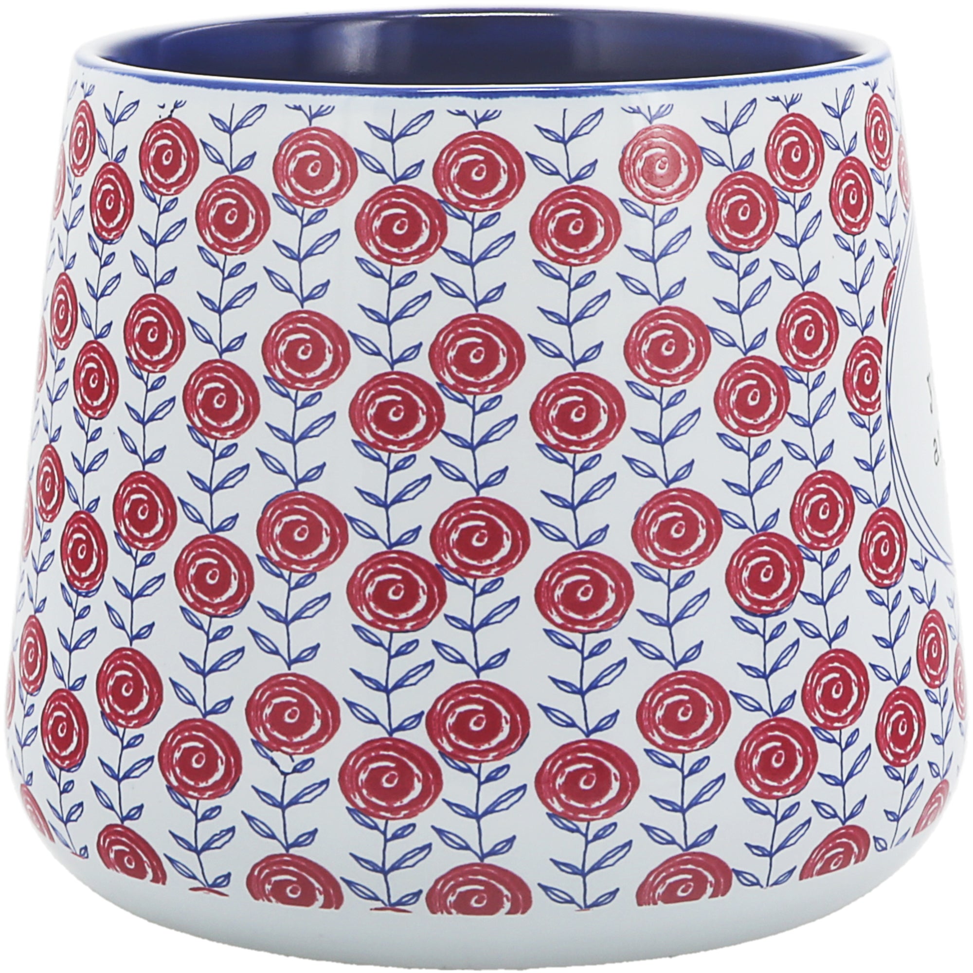 - IN-HOUSE DESIGN: You will see a typewriter written a "Mom, You Are Amazing" sentiment inside an oval shape with a triple-line purple design. A purple glossy interior smooth-edged vessel with a glossy exterior with walls that features a pink & purple ranunculus design that wraps around the outside.