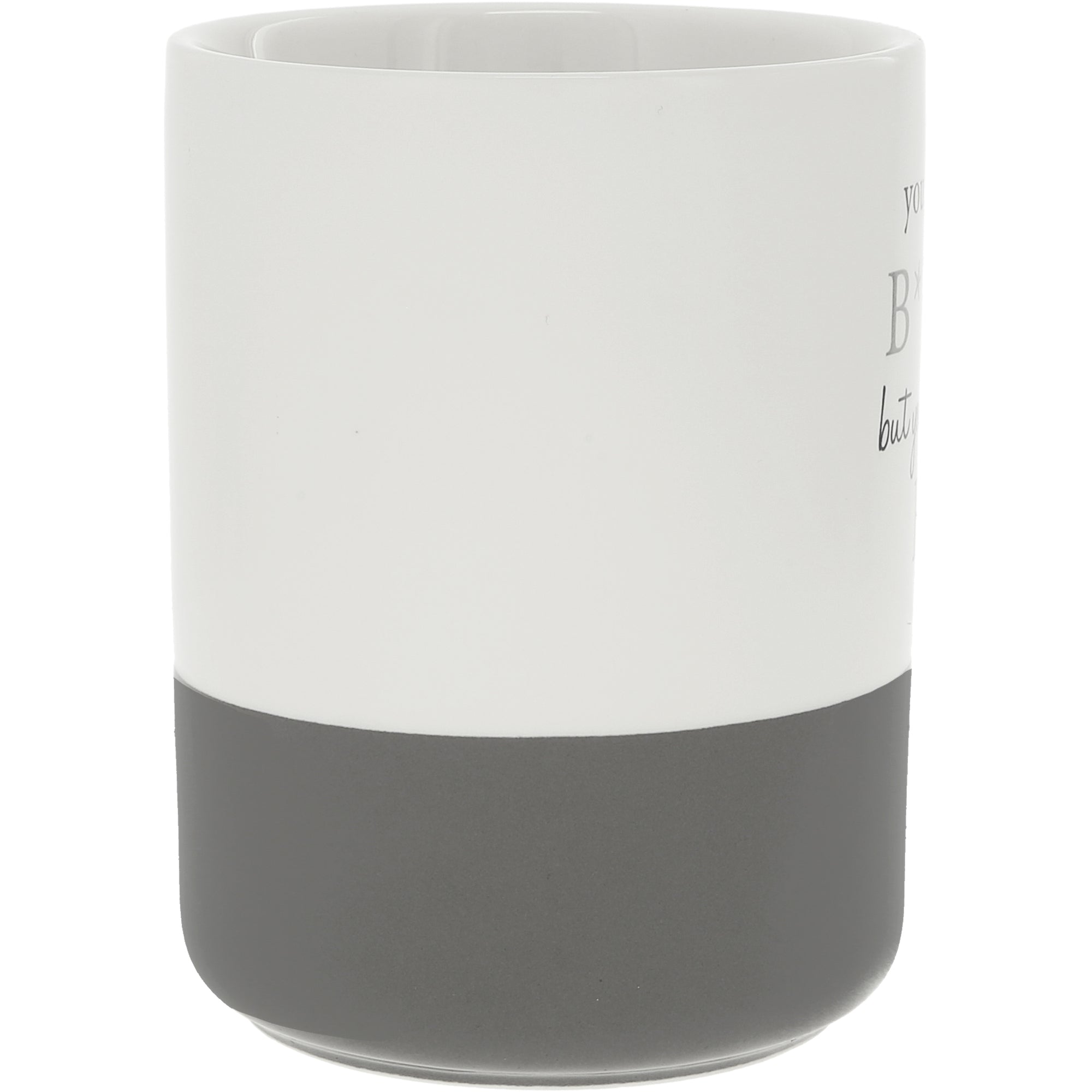 - IN-HOUSE DESIGN: The glossy glaze-dipped bottom is gray and wraps around the mug, touching the base of the handle. Whereas the remainder, including the interior, is white. The humorous "You Might Be A B*tch But You're Still My BFF" gray sentiment combines cursive and a simplistic serif font.