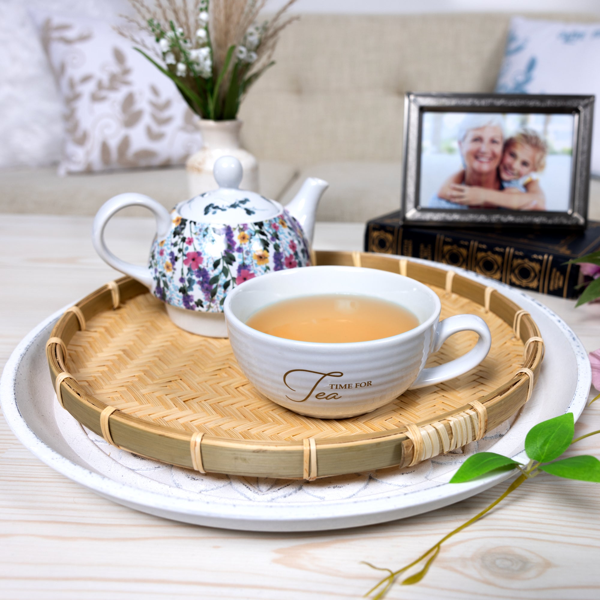 - CARE INSTRUCTIONS: The set’s practicality is enhanced by its microwave-safe and dishwasher-safe design, allowing for easy reheating and effortless cleaning. These features ensure that the recipient can use and care for this set with minimal effort, keeping it looking beautiful and ready for tea time whenever they are.