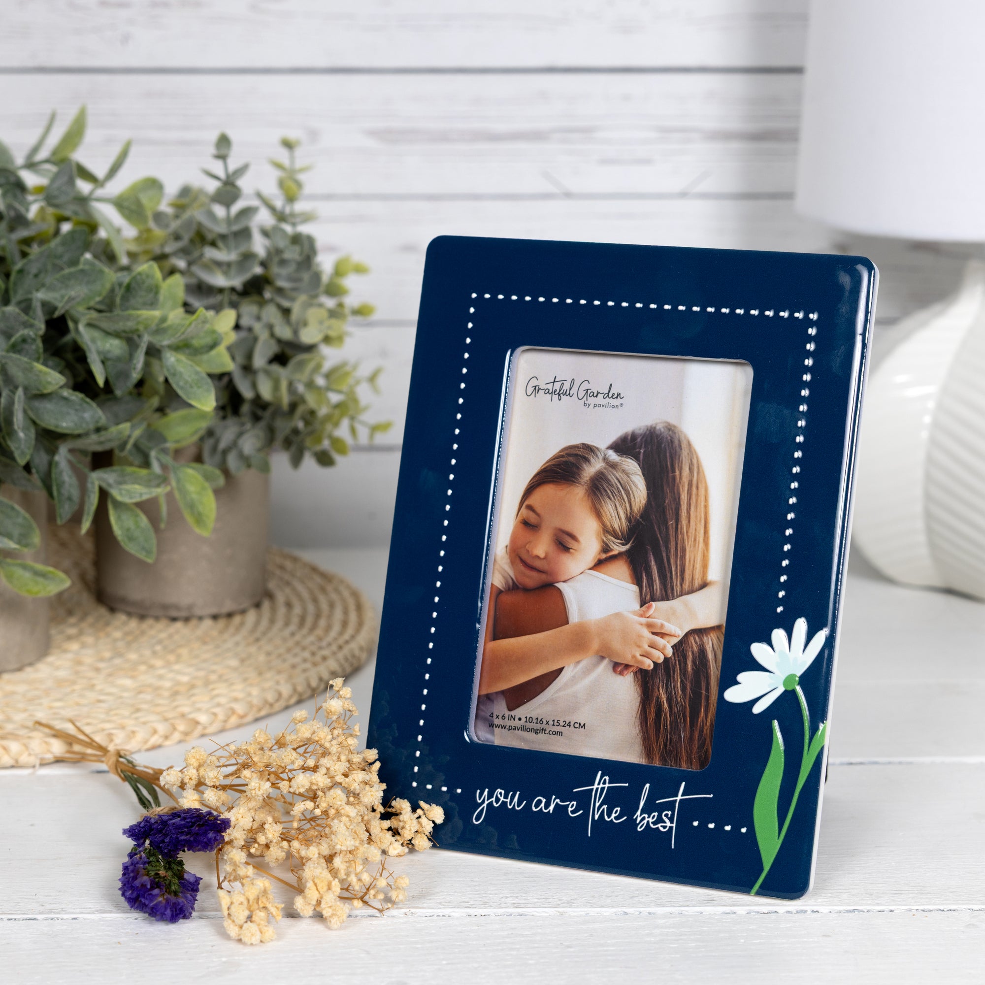 - IN-HOUSE DESIGN: A rich navy background sets the stage for crisp white stitched-style borders and a single delicate flower illustration. The script sentiment “you are the best” is printed across the bottom, combining handwritten charm with a clean, modern garden aesthetic. The contrast of navy, green, and white creates a heartfelt piece that fits beautifully into both bright and neutral décor styles.