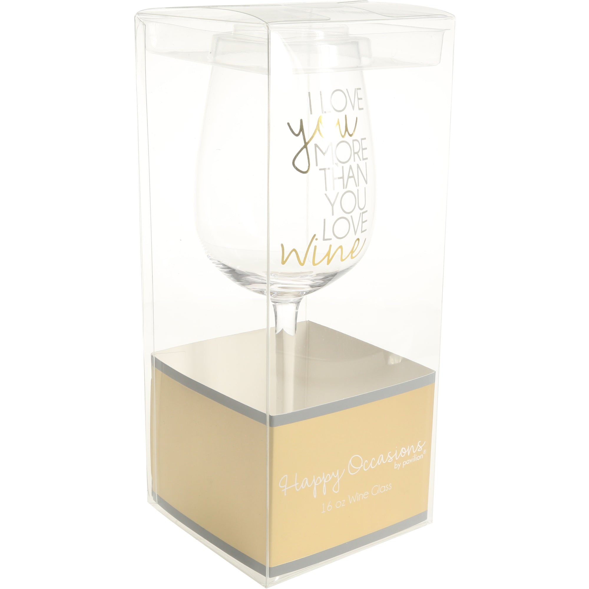 - IN-HOUSE DESIGN: "I Love You More Than You Love Wine" text is printed onto the front of the glass.