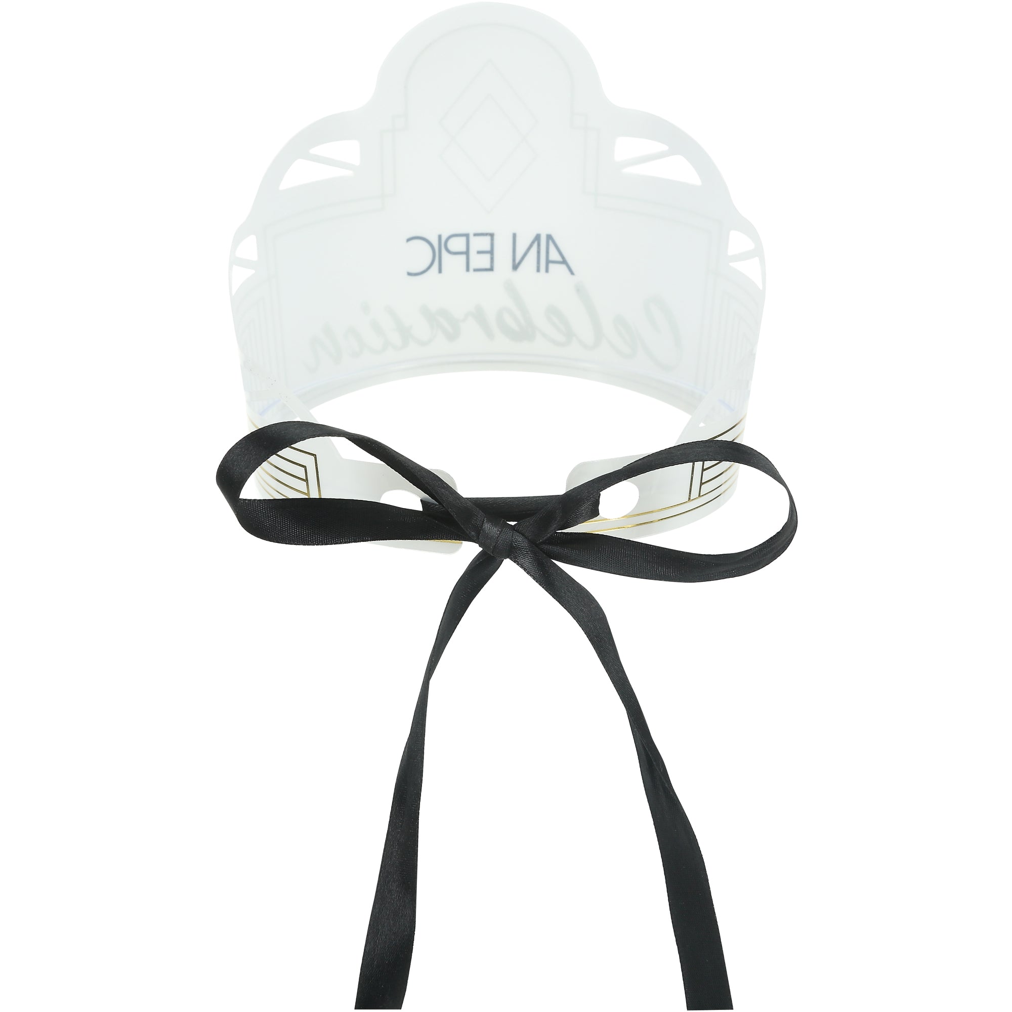 • IN-HOUSE DESIGN: "An Epic Celebration" text and accompanying geometric design are both heat stamped onto the front of the tiara.