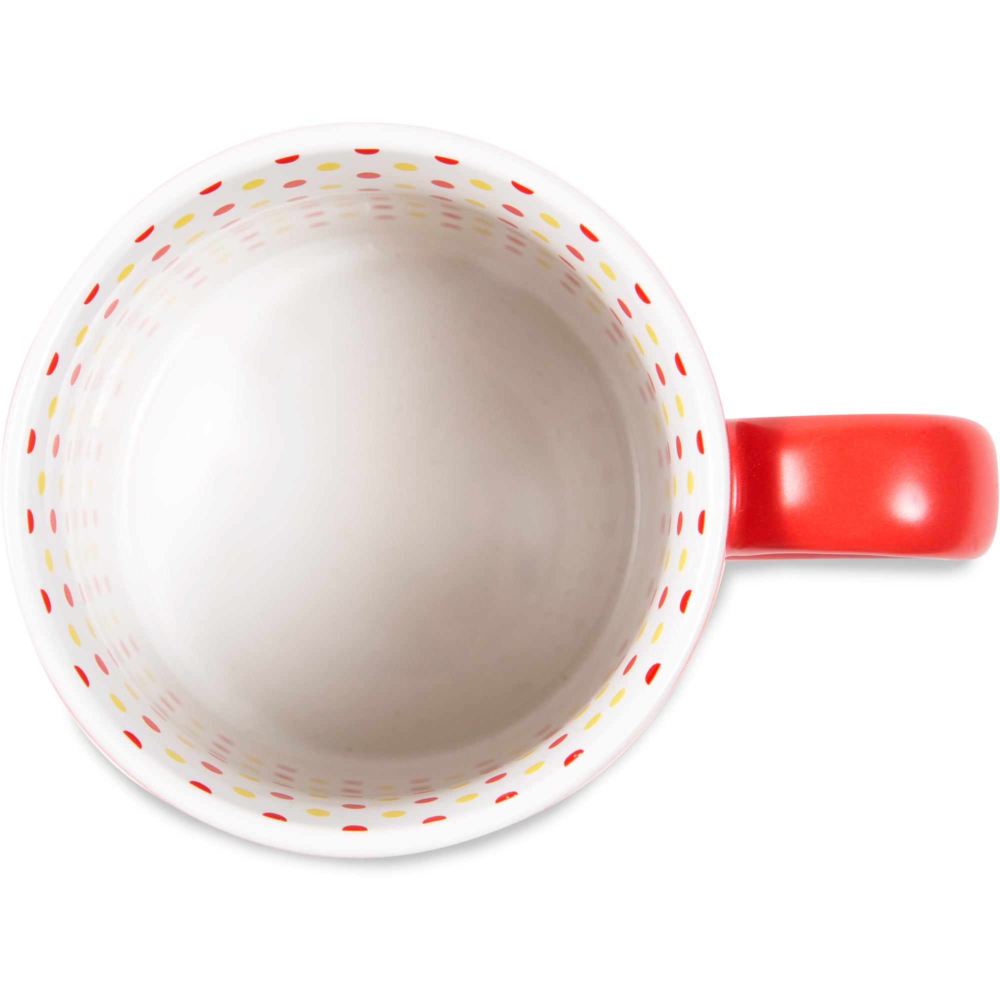 - IN-HOUSE DESIGN: "One Day Closer To Summer Vacation" text and accompanying apple icon are both printed onto the exterior of the mug, while interior features a polka dot pattern.