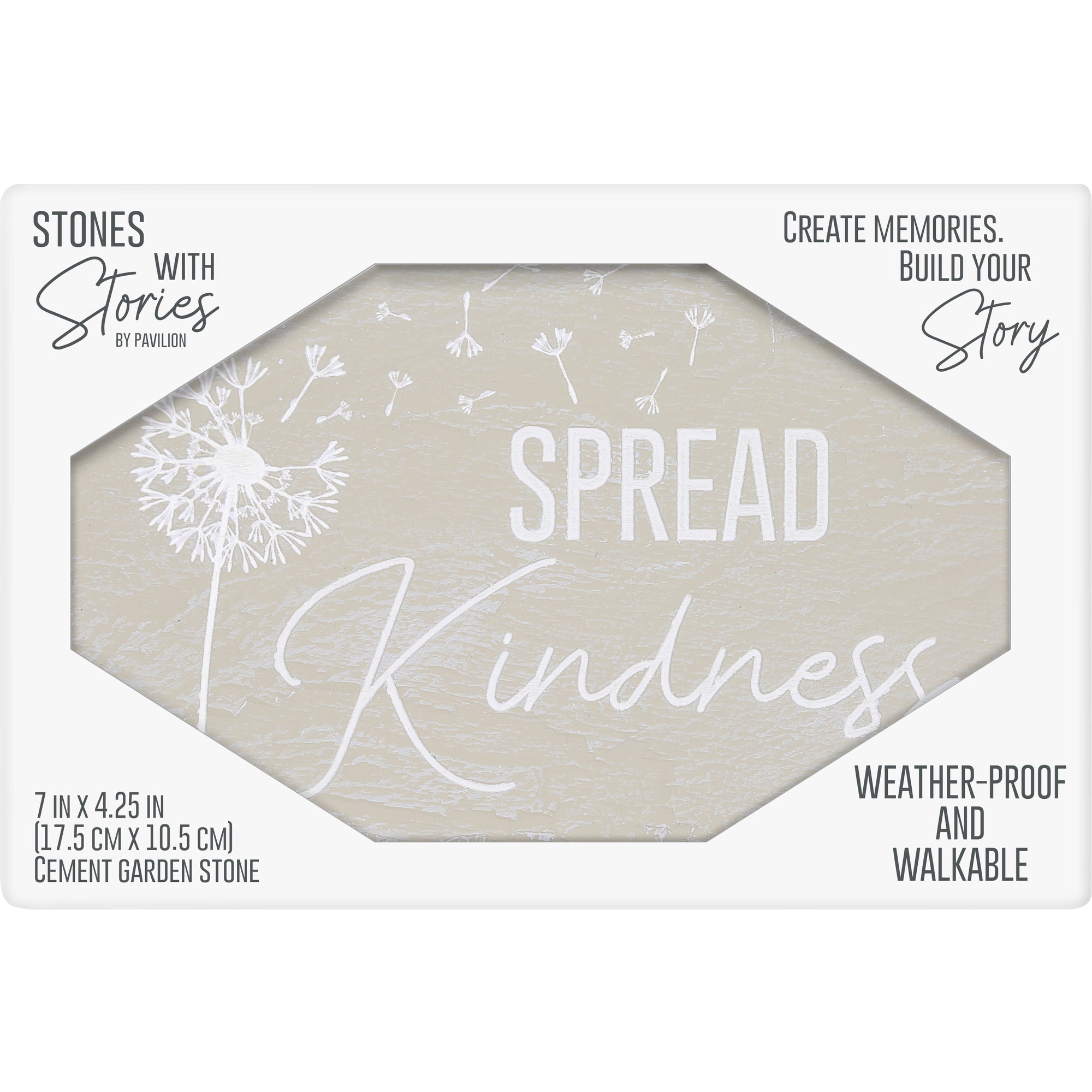 - IN-HOUSE DESIGN: This beige garden stone has a textured surface and rounded edges. It features a dandelion blowing seeds in the wind with the sentiment "Spread Kindness." This charming stone adds a touch of warmth and love to any outdoor or indoor space, serving as a meaningful reminder of the welcoming atmosphere within your home.