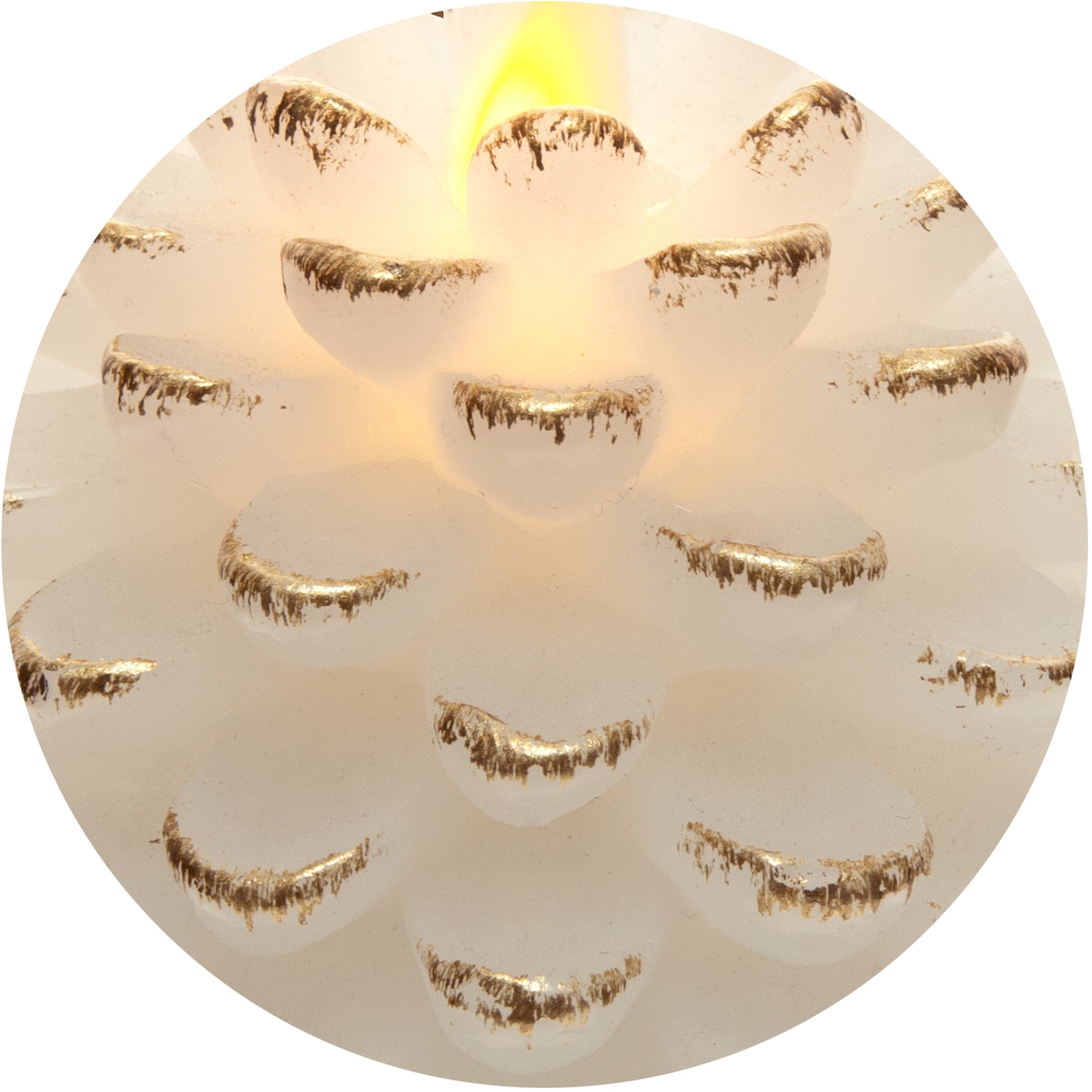 - PREMIUM QUALITY: 4.25" pine cone-shaped LED fake-flame candle, packaged in a printed box, is made from paraffin wax and plastic.