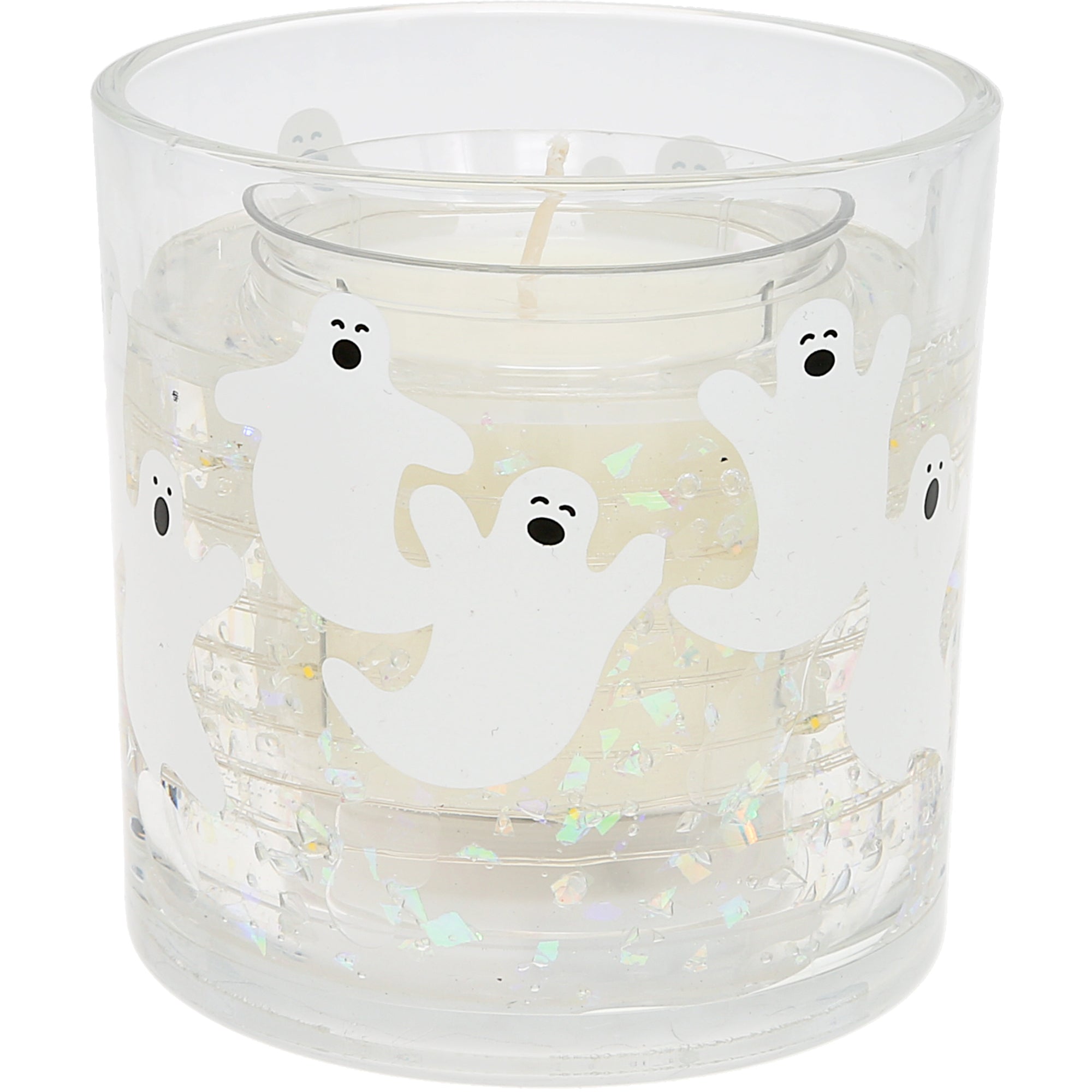 - PREMIUM QUALITY: This 3.5 oz candle combines unscented soy wax with LED-enhanced gel, producing a hauntingly warm glow as it burns. Embedded iridescent glitter flakes shimmer like tiny ghost lights, while high-quality printed artwork wraps the glass. Packaged with a printed band, acetate wax cover, and white die-cut box for easy gifting.