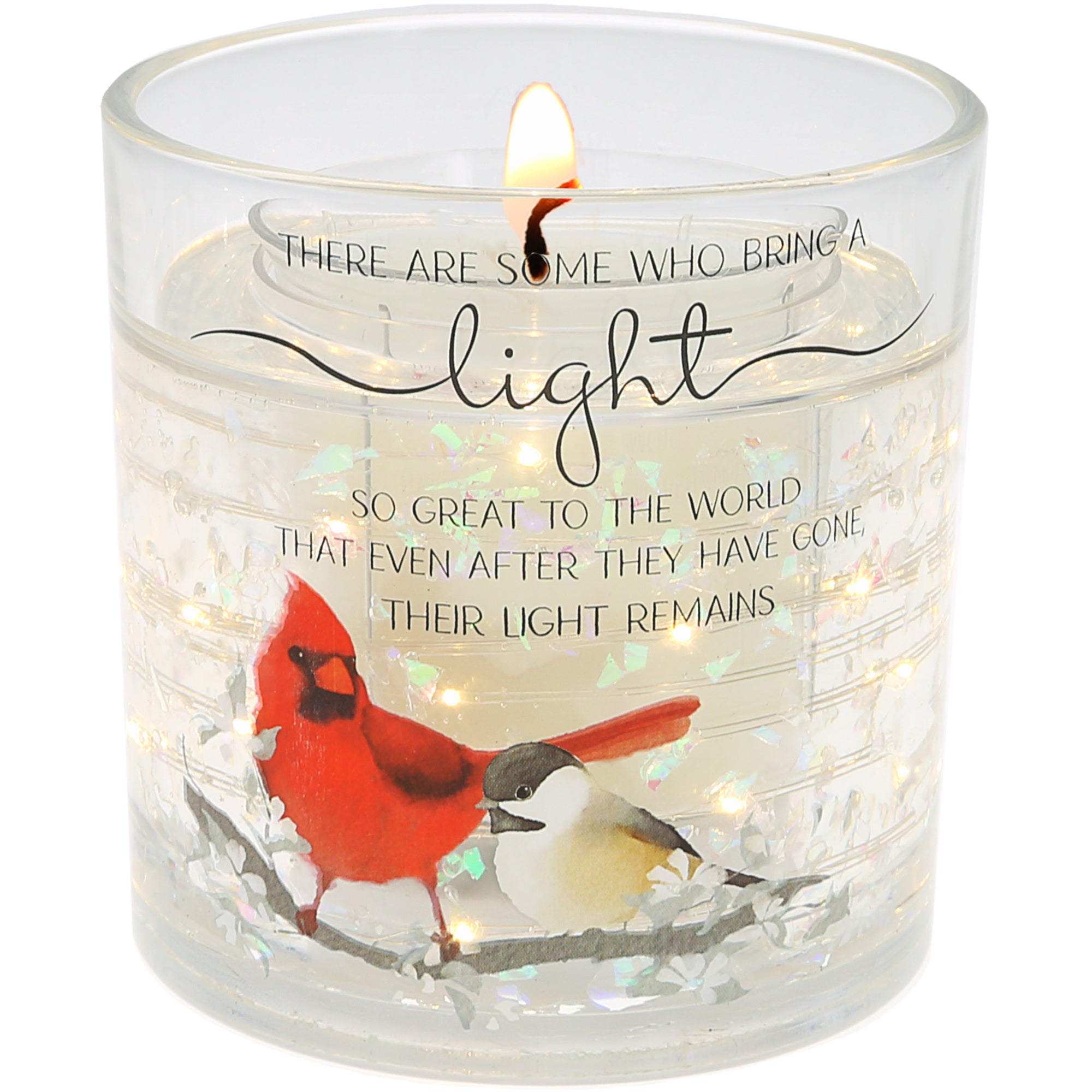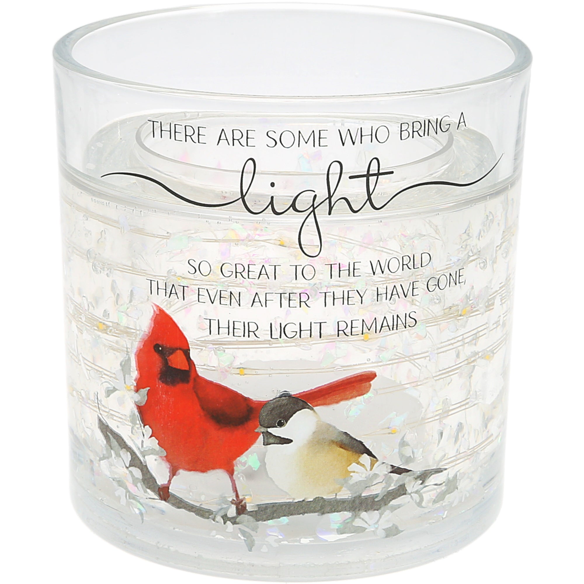 - IN-HOUSE DESIGN: Features a perched red cardinal surrounded by soft foliage with the message: “There are some who bring a light so great to the world that even after they have gone, their light remains.” Printed with delicate, high-quality artwork and no glitter accents, keeping the design serene and classic.