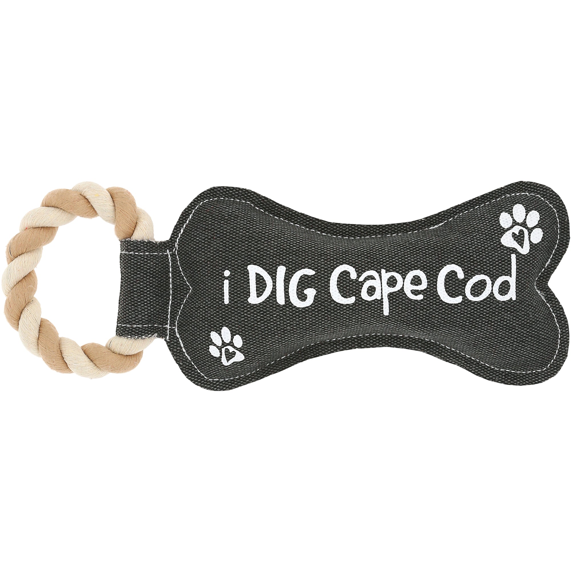 - IN-HOUSE DESIGN: Features the phrase “I Dig Cape Cod” with playful paw prints printed in white against a black canvas background. The rope handle adds a nautical touch, complementing coastal décor and themes.