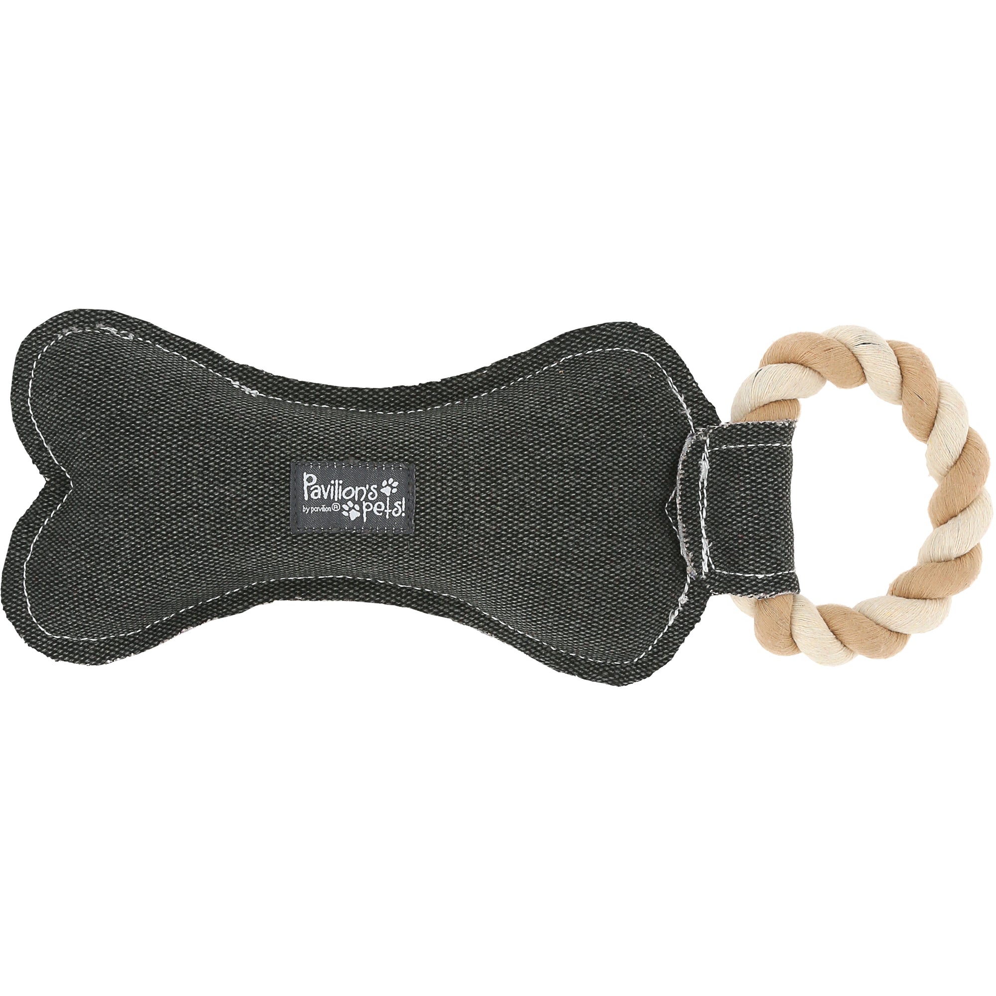 - PREMIUM QUALITY: Made from heavy-duty canvas with a natural cotton rope handle, this 12" bone-shaped toy includes a squeaker and reinforced stitching. The rope loop makes it easy to toss, fetch, and tug, while the canvas texture helps promote healthy chewing habits.