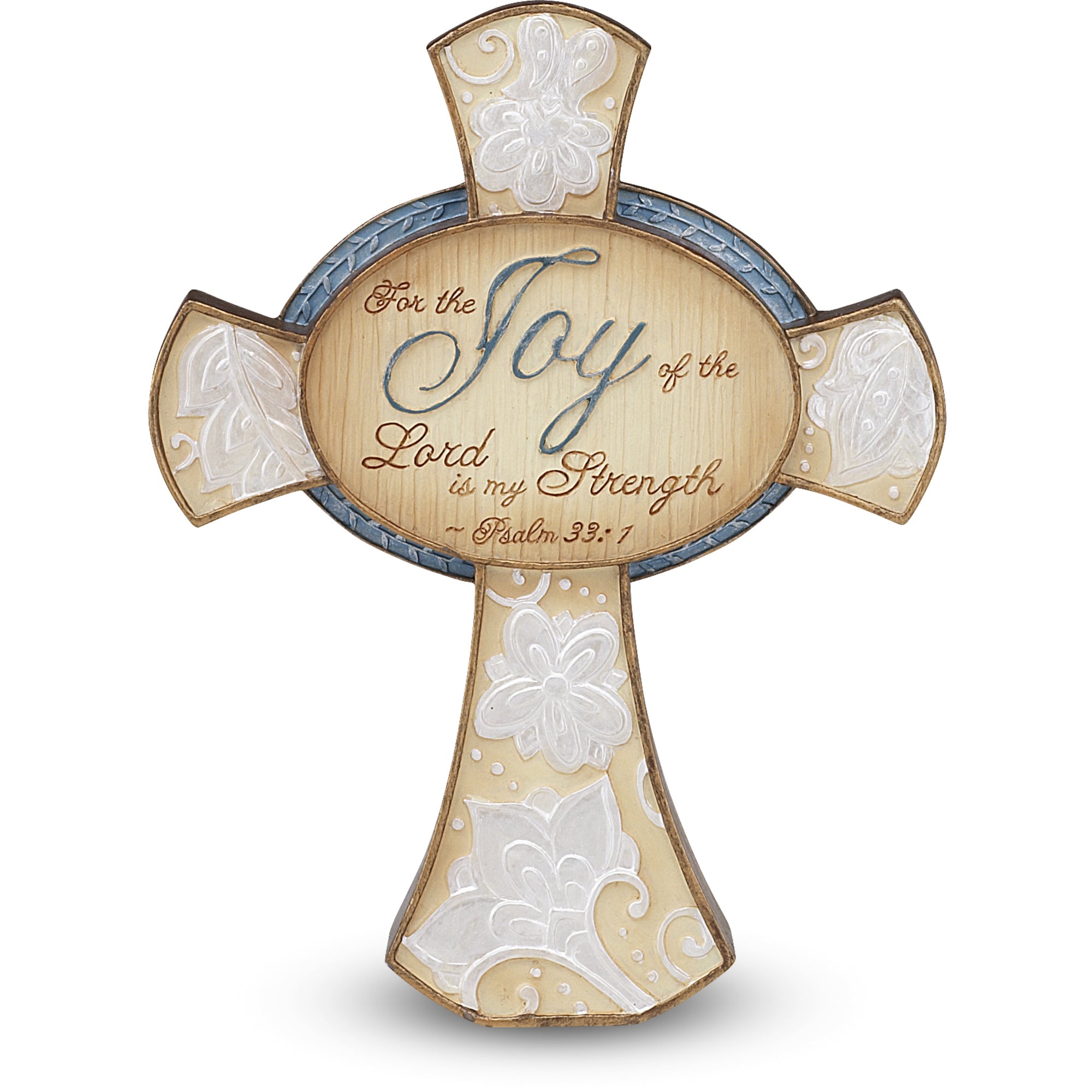 - IN-HOUSE DESIGN: "For The Joy Of The Lord Is My Strength - Psalm 33:1" text is hand-painted onto the cross.