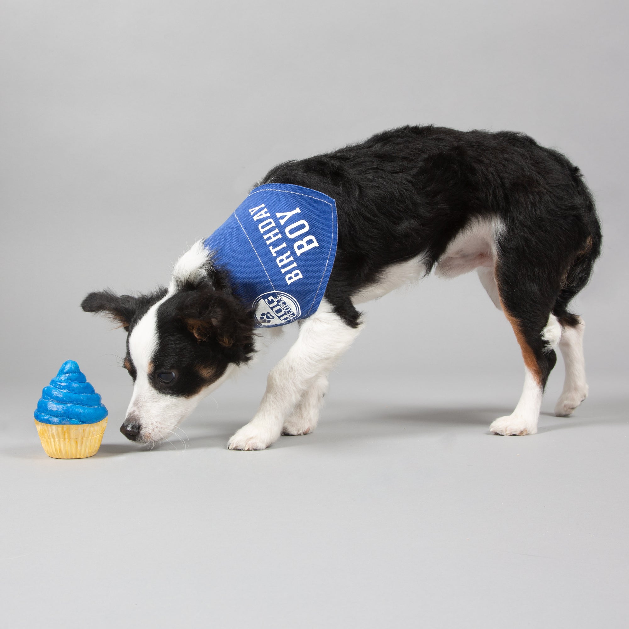 - IN-HOUSE DESIGN: "Birthday Boy" text and Dog People logo are both printed on the front of the bandana, whereas the We Pets tag is sewn-in on the back.