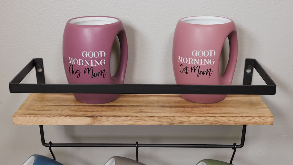 • IN-HOUSE DESIGN: "Good Morning Cat Mom" white and black sentiment decal on the front side of the matte pink cup. The Interior is white and has a glossy glaze prop 65 food-safe finish. We designed and created this mug to blend in with any of your kitchen's current drinkware collections with a refined, modern, and aesthetically pleasing look paired with humor and relatable sentiment.
