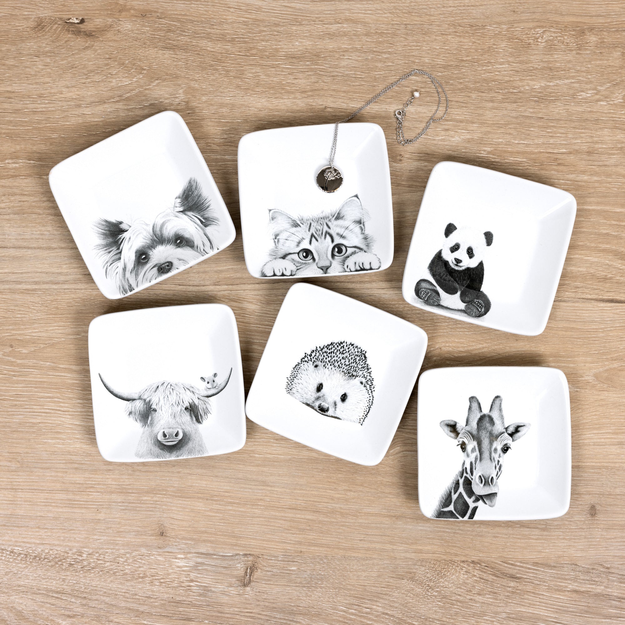 - IN-HOUSE DESIGN: This keepsake dish features a beautifully detailed dog illustration by Katherine Sheard, capturing the playful and loving essence of our furry friends. The design showcases raised dots and a glossy finish, adding texture and visual appeal to the artwork. The combination of intricate details and playful style makes this dish a perfect decorative piece for dog lovers, blending seamlessly into a variety of home decor themes.