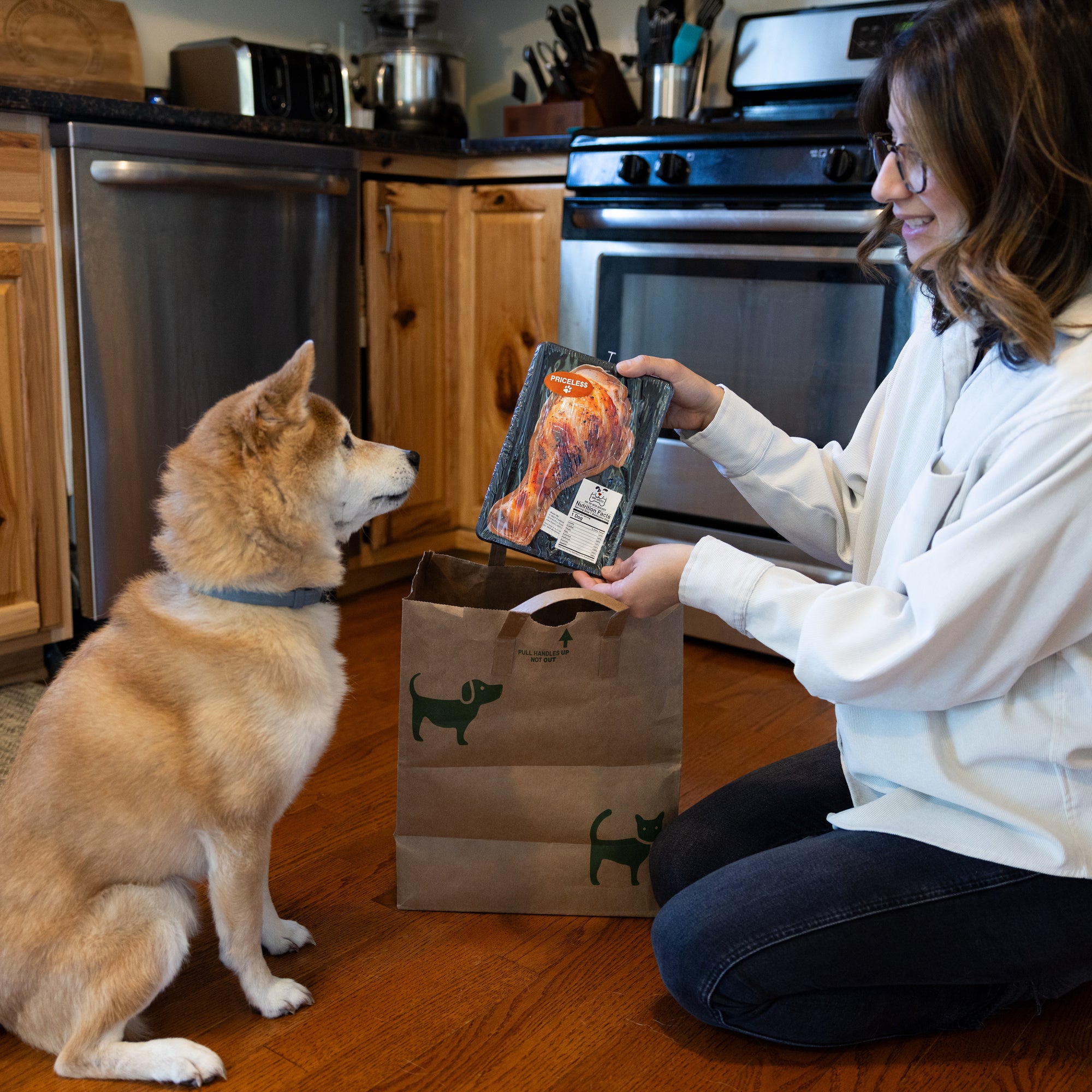 - IN-HOUSE DESIGN: The photo-realistic print is on both sides. A Red oval "Priceless" sticker is accompanied by a "Nutrition Facts" sticker, which includes 100% loyalty, cuddles, treats, pets, cuteness, fluffiness, zoomies, and appetite. It is packaged in a black Styrofoam tray wrapped in plastic wrap with a J-hook.