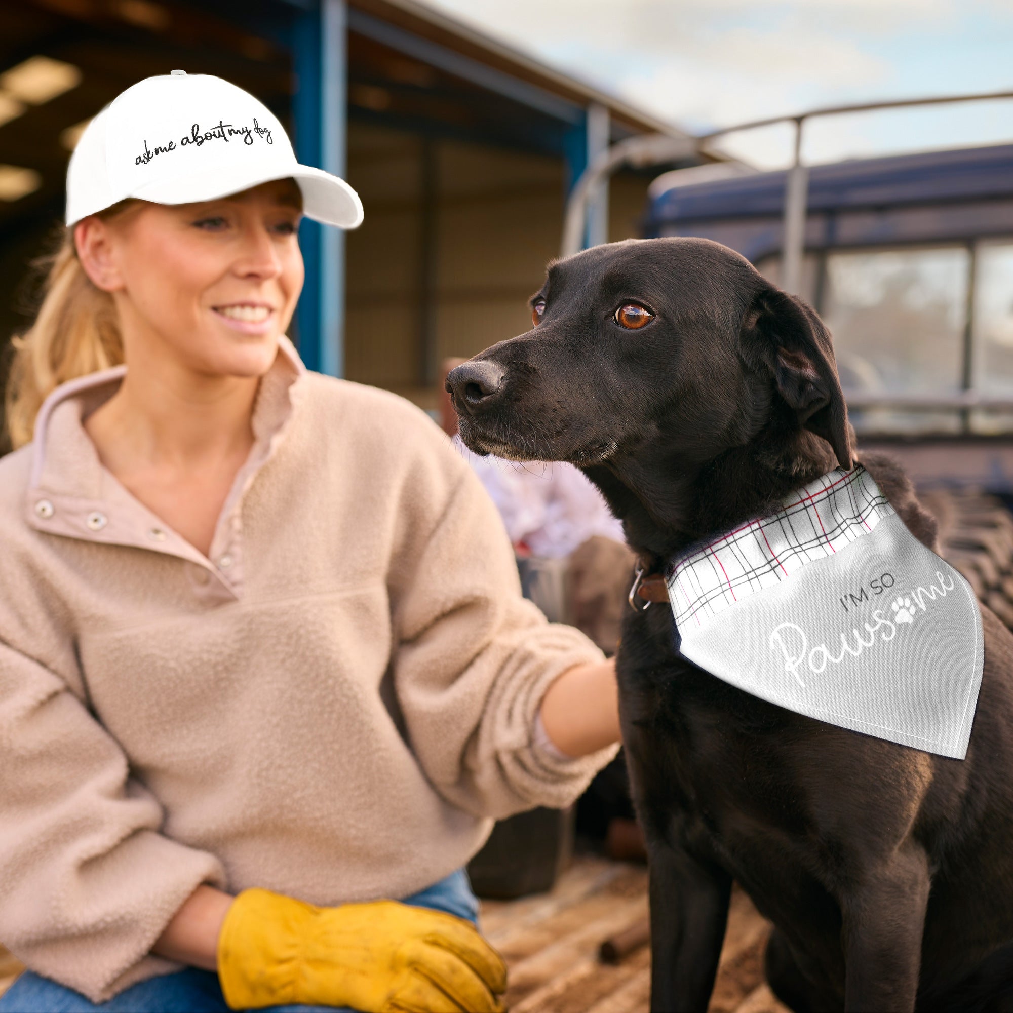 - IN-HOUSE DESIGN: The dark gray sentiment “Ask Me About My Dog” is stylishly embroidered on the front, allowing dog enthusiasts to express their love for their furry friend in a simple, understated way. An embroidered paw print on the side adds a playful touch, making this hat a must-have for dog parents. The neutral white color makes it a versatile accessory that complements a range of casual outfits.