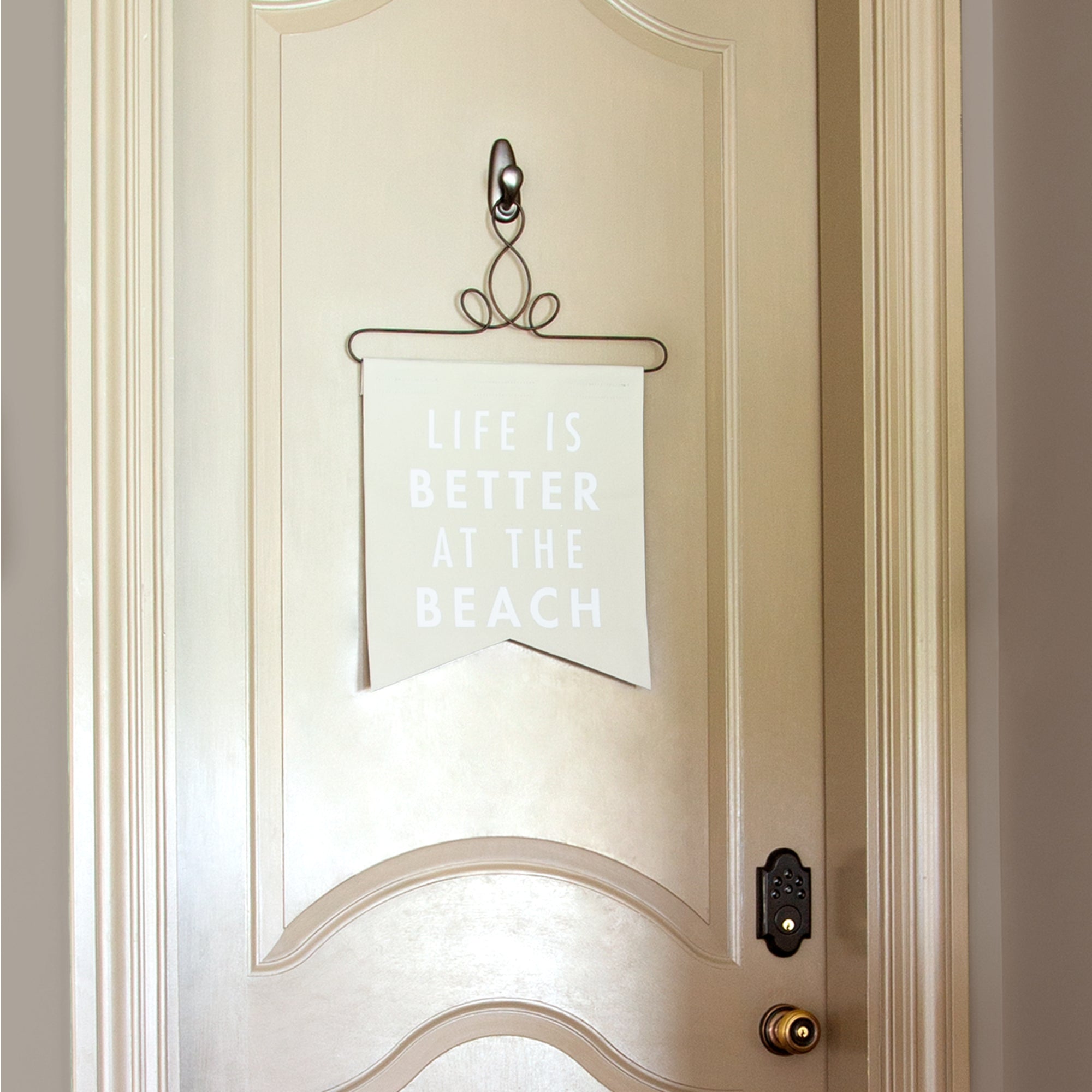 - IN-HOUSE DESIGN: "Life Is Better At The Beach" text is printed onto the front of the banner.