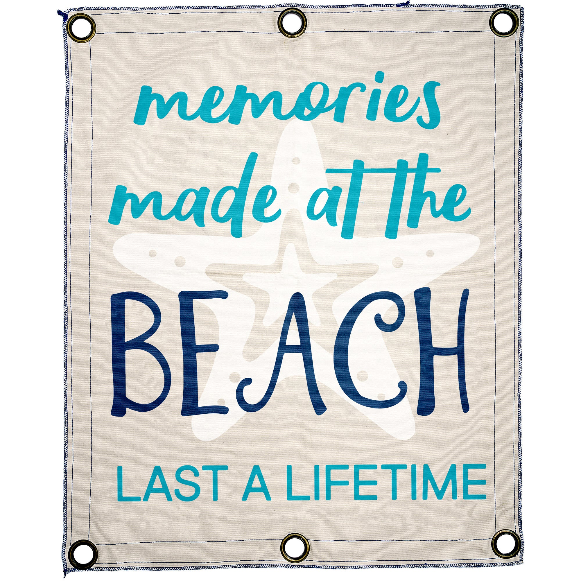 - IN-HOUSE DESIGN: "Memories Made At The Beach Last A Lifetime" blue & teal text sentiment on top of the white starfish decal is only printed on the front. This banner was created by our design team to complement other home decor items inside of a beach house where the best memories are made on the boat, toes in the sand, a drink in your hand, swimming in the sea/ocean water on a hot sunny summer day.