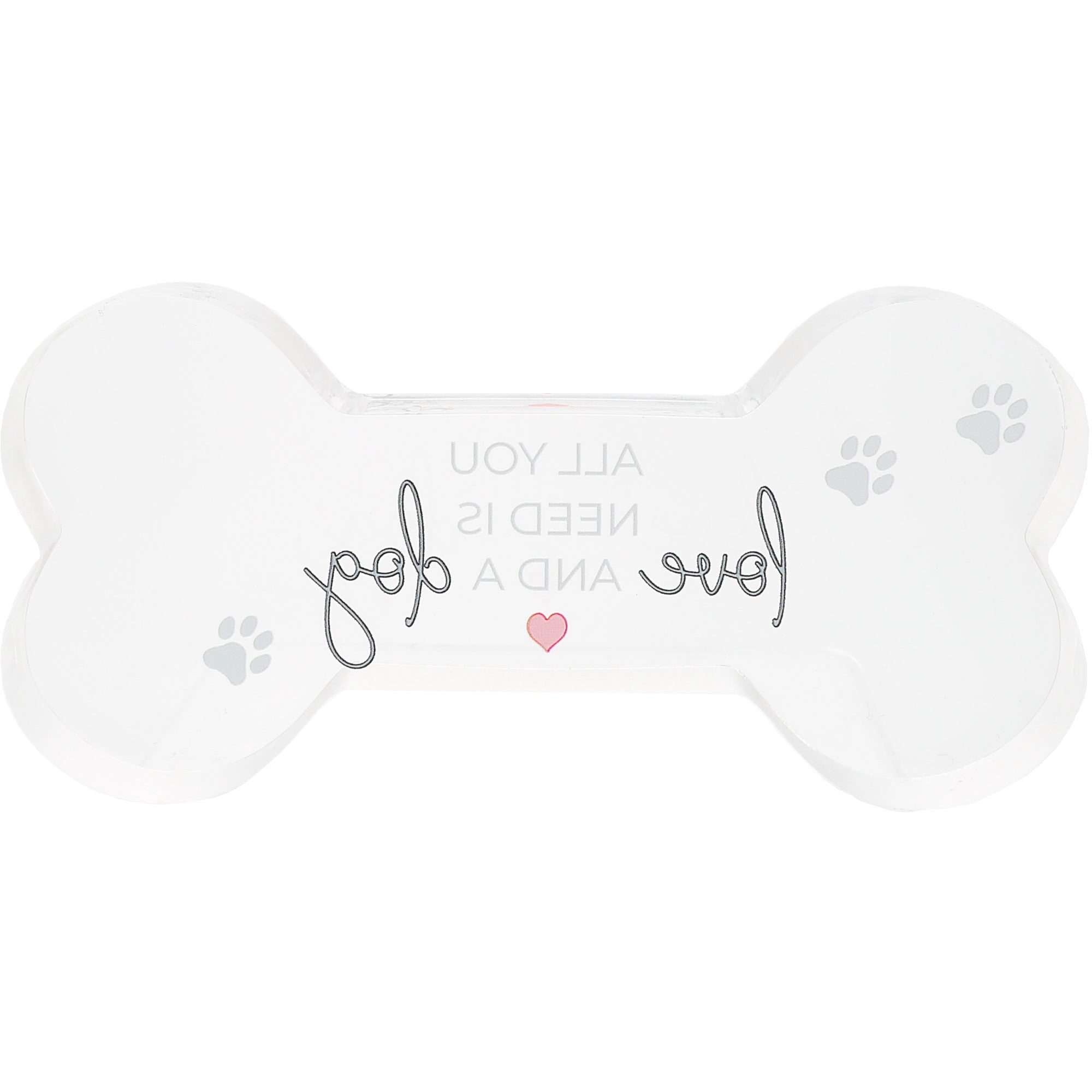 - IN-HOUSE DESIGN: Features a playful yet meaningful layout in soft gray and black text with the quote, “All you need is love and a dog.” The script font and lowercase styling add warmth and charm, while the tiny red heart and trailing paw prints subtly highlight the joy dogs bring. The bone silhouette makes it especially suited for canine-themed décor.