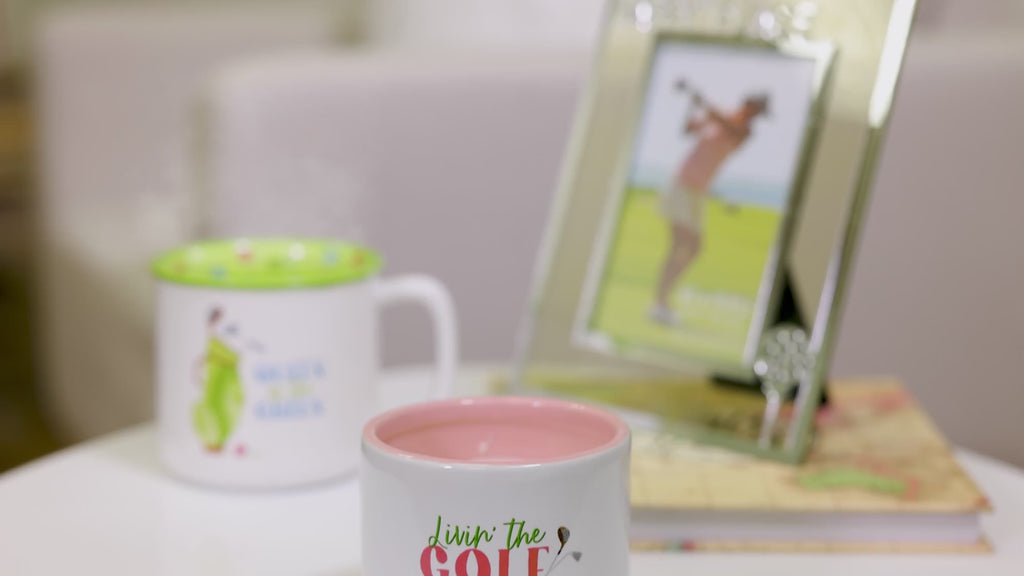 - IN-HOUSE DESIGN: Introducing our innovative candle that brings a delightful surprise to your loved one as time goes by. After approximately 10 minutes, vibrant multi-colored golf balls and golf tees emerge from the wax, capturing your attention with their playful design. As the candle continues to burn, the complete pattern gradually reveals itself after 60 minutes, creating a captivating visual experience. With each subsequent burn, the design disappears and reappears, adding an element of excitement to every lighting. The front of the candle features a charming springtime decal "Livin' The Golf Life," accompanied by two elegantly depicted golf clubs. The cylindrical vessel boasts a glossy white exterior, exuding a modern and minimalistic aesthetic, while the glossy pink interior adds a touch of sophistication.