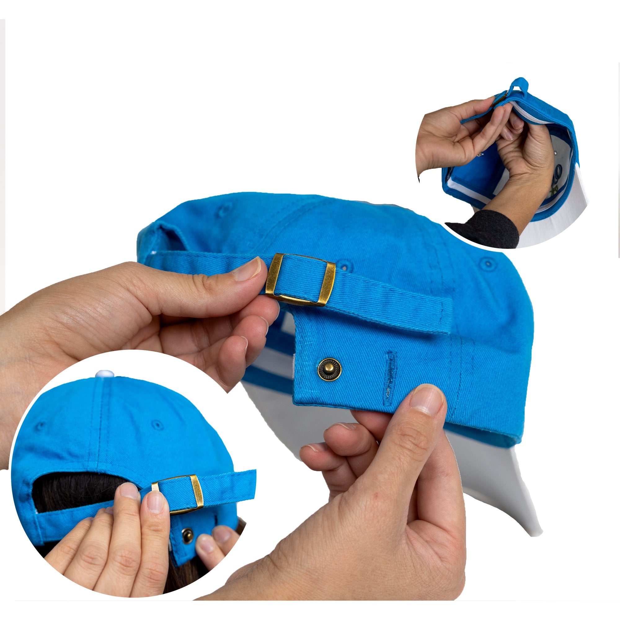 - PREMIUM QUALITY: Complete your casual look with our versatile one-size-fits-most baseball hats. Made from 100% cotton, these hats offer a comfortable and breathable fit. The weatherproof and rust-proof metal snap and adjustable brass clasp hardware ensure a secure and customizable fit. Whether you prefer a looser or tighter fit, the adjustable strap can be easily tucked away into the backside of the hat for a clean and streamlined look. Whether you're hitting the golf course, running errands, or simply enjoying the outdoors, our baseball hats are the perfect accessory for any occasion.