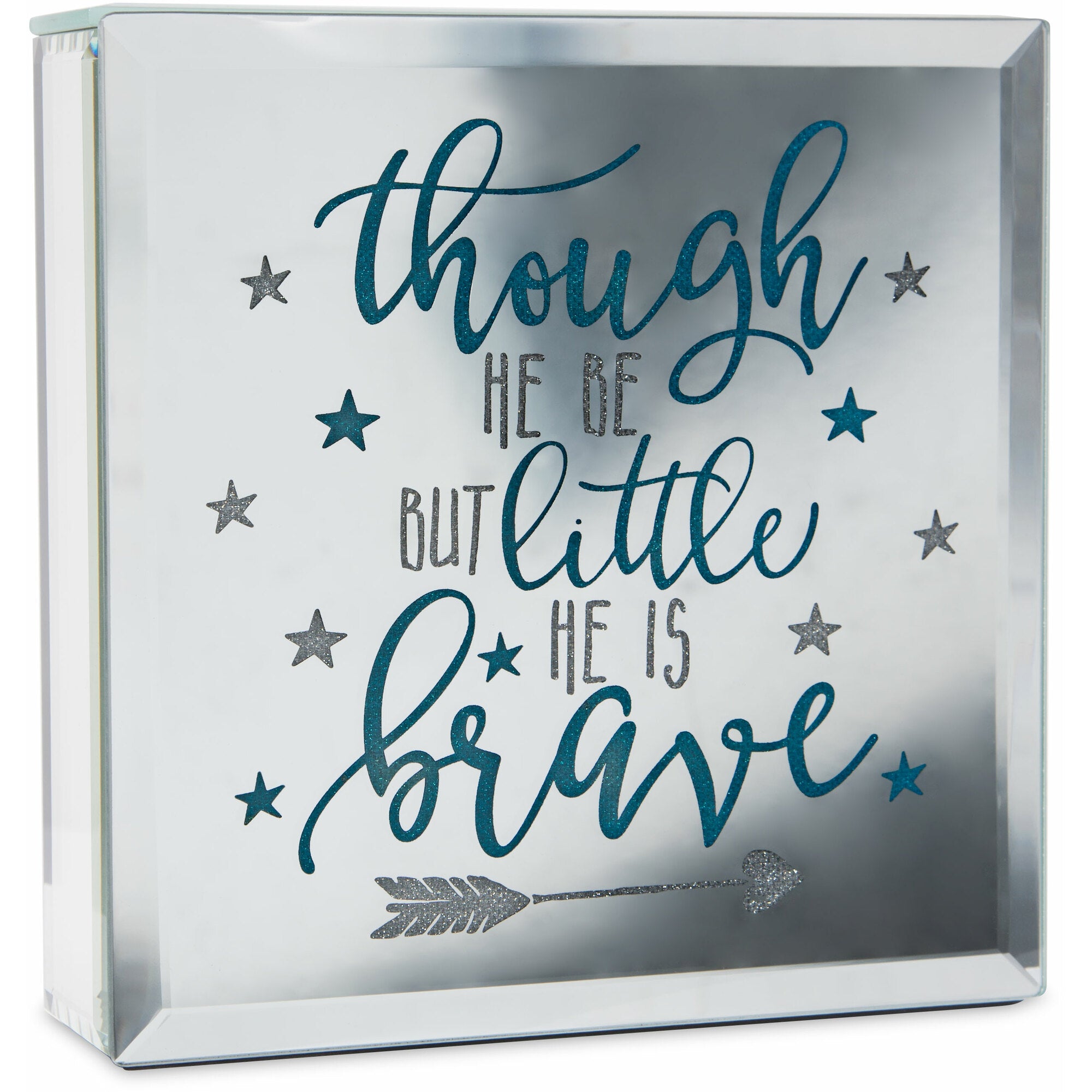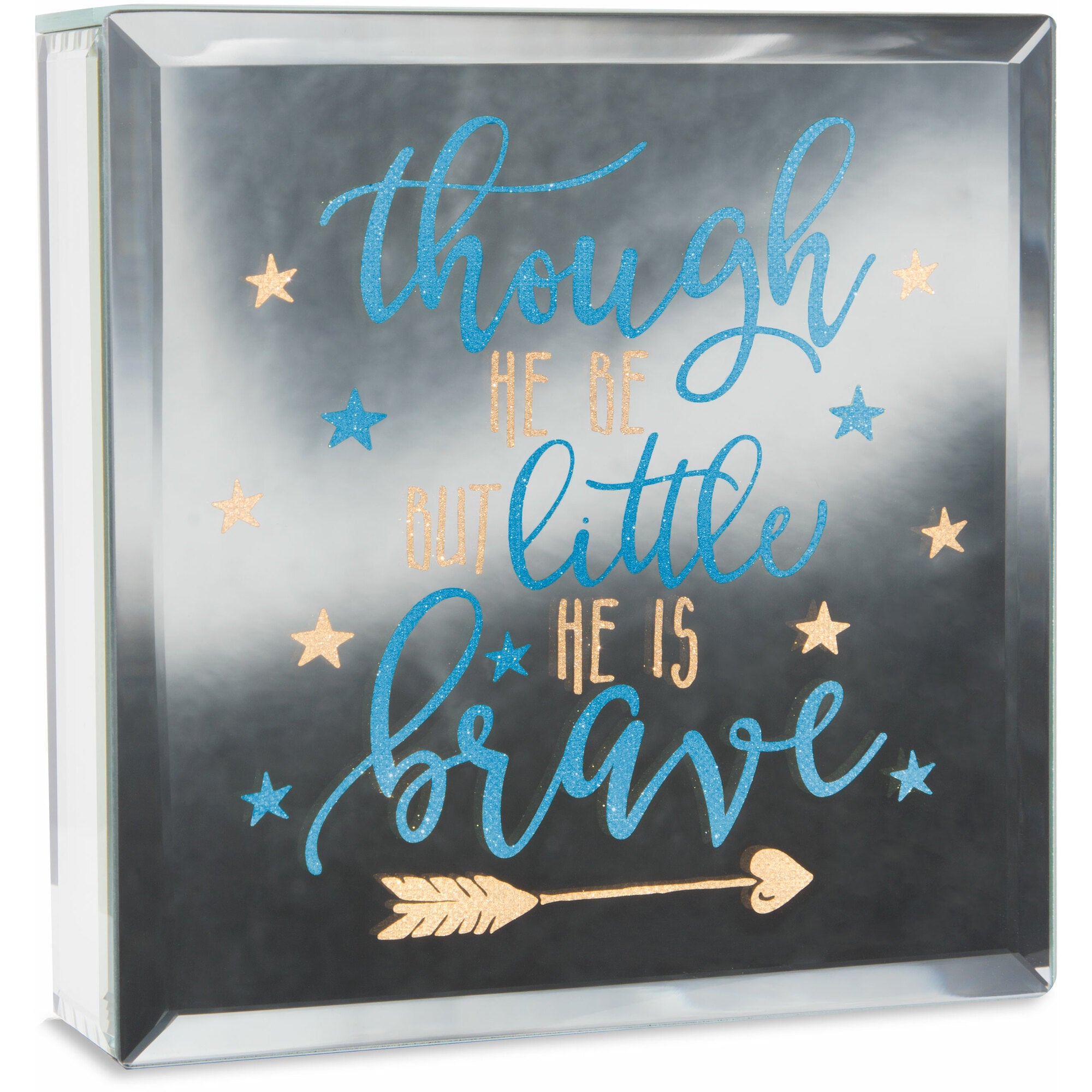 - IN-HOUSE DESIGN: "Though He Be But Little He Is Brave" text is displayed on the front of the plaque, alongside arrow detailing.