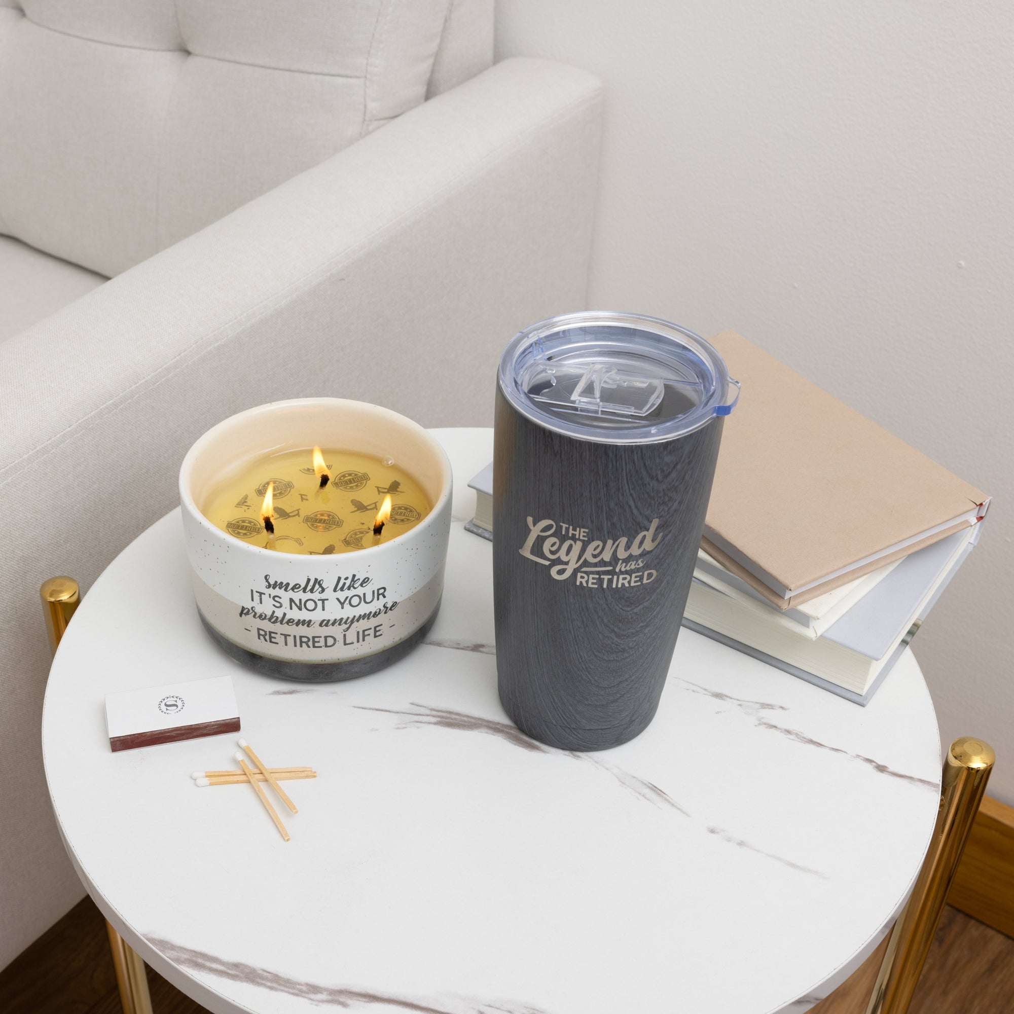 - IN-HOUSE DESIGN: The new & innovative candle offers a unique message for your loved one within the wax as time progresses. You will see the star and "Retired" star and circular logo sentiment after about 10 minutes. As you watch, the entire decal will appear after 60 minutes. Then, the message will hide again and reappear with each burn. The front of the candles has a simplistic "Smells Like It's Not Your Problem Anymore - Retired Life -" decal accompanied by a tri-colored brown, tan, and white matte speckled exterior and glossy tan interior.