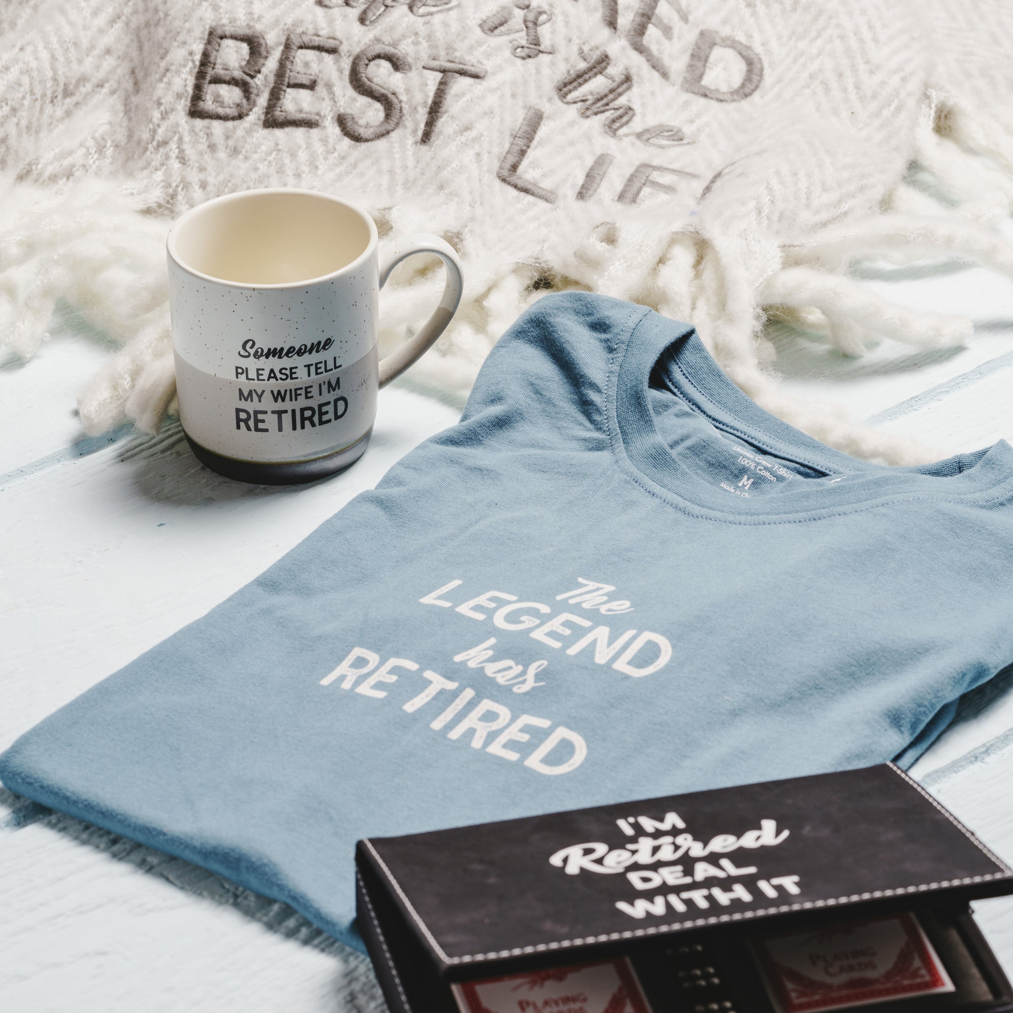 - IN-HOUSE DESIGN: "Someone Please Tell My Wife I'm Retired" text is printed onto the front of the matte tri-colored, hand-dipped mug on top of a speckled pattern. The interior has a glossy tan color.