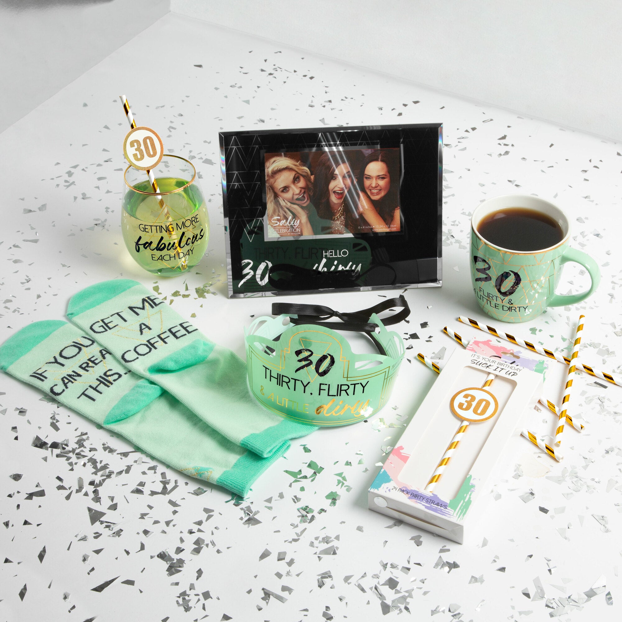 - IN-HOUSE DESIGN: "30; Flirty & A Little Dirty" text and accompanying decal are both printed onto the mug.
