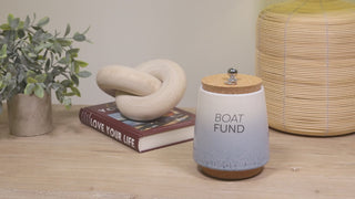 - IN-HOUSE DESIGN: The front side of the piggy bank has a simplistic "Boat Fund" gray sentiment and an Ombre glossy reactive dripped speckling glaze that fades from white at the top to navy blue at the bottom. The interior of the jar features fill lines accompanied by sentiments that are .75 inches from one another. The very bottom line "Not Enough Fund$" goes up to 1.5 inches from the base, followed by "Getting There," leading to "So Much Fund$" with "Fully Funded" at the top.