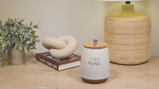 • IN-HOUSE DESIGN: The front side of the piggy bank has a simplistic "Car Fund" gray sentiment and an ombre glossy reactive dripped speckling glaze that fades from white at the top to gray at the bottom. The interior of the jar features fill lines accompanied by sentiments that are .75 inches from one another. The very bottom line "Not Enough Fund$" goes up to 1.5 inches from the base, followed by "Getting There," leading to "So Much Fund$" with "Fully Funded" at the top.