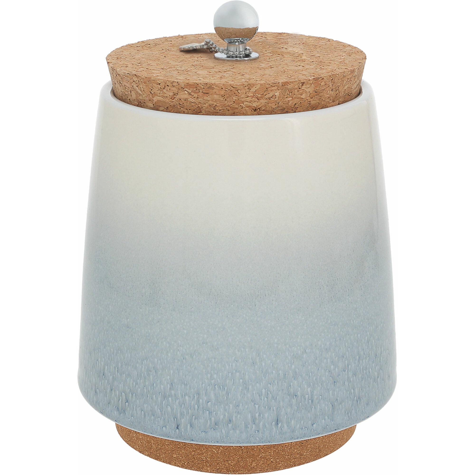 - PREMIUM QUALITY: This incredible money-holding jar is 6.5" tall. The base of the stoneware vessel is 4.5" wide, tapering to 3.5" wide towards the top, where the cork lid narrows from top to bottom to fit snuggly inside the lip of the container. A 1.75" length metal chain holds a removable $ icon keychain that can be added to your keys or left connected to the .5" wide x .75" tall rounded metal ball handle. The base is made from cork to prevent surfaces from scratching and provides an easier grip to pick up the canister.