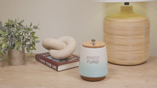 - IN-HOUSE DESIGN: The front side of the piggy bank has a simplistic "Gambling Money/Bingo Fund" gray sentiment and an ombre glossy reactive dripped speckling glaze that fades from white at the top to teal at the bottom. The interior of the jar features fill lines accompanied by sentiments that are .75 inches from one another. The very bottom line "Not Enough Fund$" goes up to 1.5 inches from the base, followed by "Getting There," leading to "So Much Fund$" with "Fully Funded" at the top.