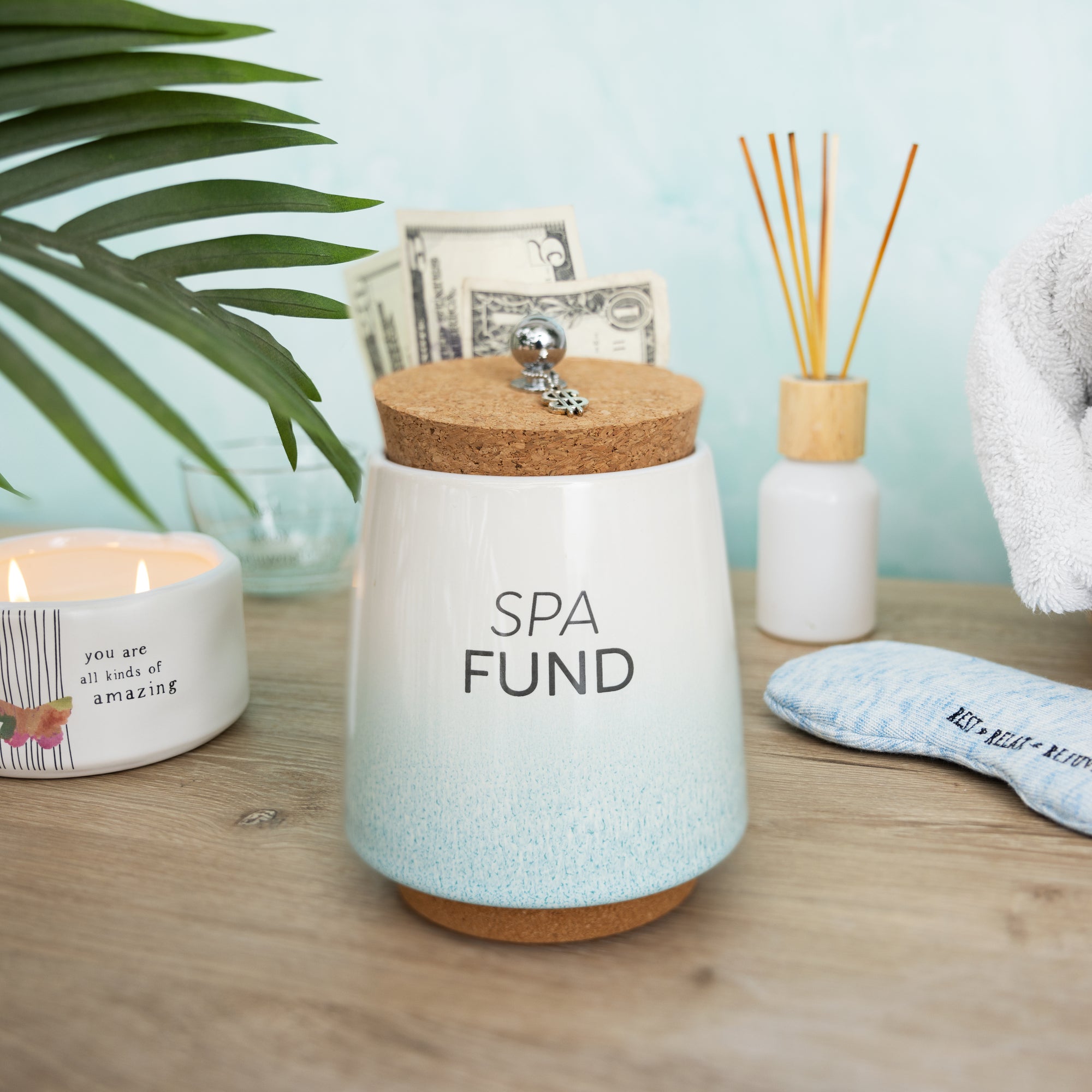• IN-HOUSE DESIGN: The front side of the piggy bank has a simplistic "Spa Fund" gray sentiment, and the backside has "Massage Fund" and an ombre glossy reactive dripped speckling glaze that fades from white at the top to teal at the bottom. The interior of the jar features fill lines accompanied by sentiments that are .75 inches from one another. The very bottom line "Not Enough Fund$" goes up to 1.5 inches from the base, followed by "Getting There," leading to "So Much Fund$" with "Fully Funded" at the top.