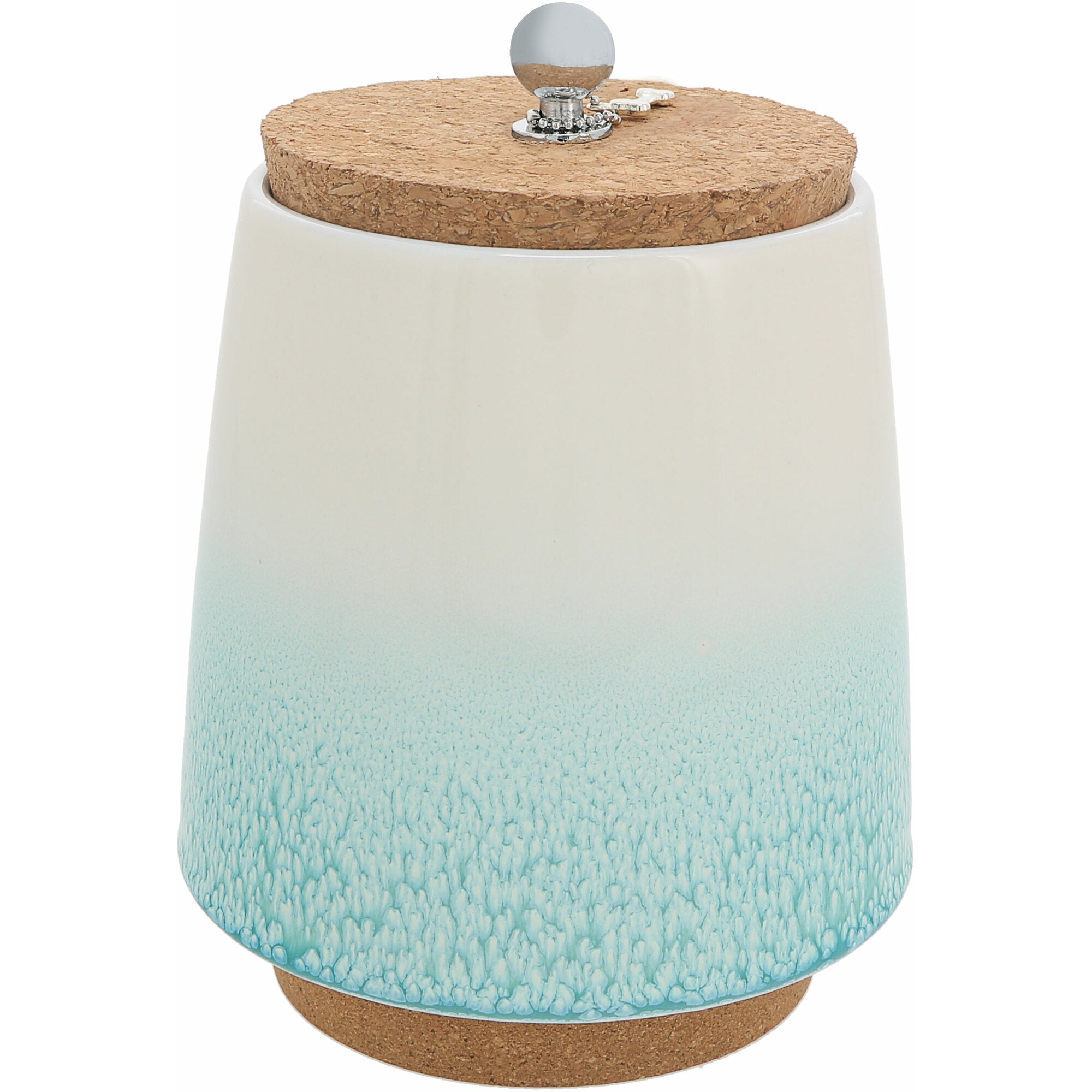- PREMIUM QUALITY: This incredible money-holding jar is 6.5" tall. The base of the stoneware vessel is 4.5" wide, tapering to 3.5" wide towards the top, where the cork lid narrows from top to bottom to fit snuggly inside the lip of the container. A 1.75" length metal chain holds a removable dog bone icon keychain that can be added to your keys or left connected to the .5" wide x .75" tall rounded metal ball handle. The base is made from cork to prevent surfaces from scratching and provides an easier grip to pick up the canister.