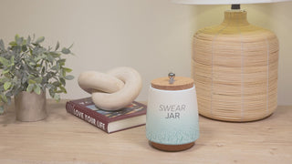 - IN-HOUSE DESIGN: The front side of the piggy bank has a simplistic "Swear Jar" gray sentiment and an ombre glossy reactive dripped speckling glaze that fades from white at the top to teal at the bottom. The interior of the jar features fill lines accompanied by sentiments that are .75 inches from one another. The very bottom line "Not Enough Fund$" goes up to 1.5 inches from the base, followed by "Getting There," leading to "So Much Fund$" with "Fully Funded" at the top.