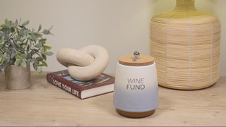- IN-HOUSE DESIGN: The front side of the piggy bank has a simplistic "Wine Fund" gray sentiment and an ombre glossy reactive dripped speckling glaze that fades from white at the top to blue at the bottom. The interior of the jar features fill lines accompanied by sentiments that are .75 inches from one another. The very bottom line "Not Enough Fund$" goes up to 1.5 inches from the base, followed by "Getting There," leading to "So Much Fund$" with "Fully Funded" at the top.