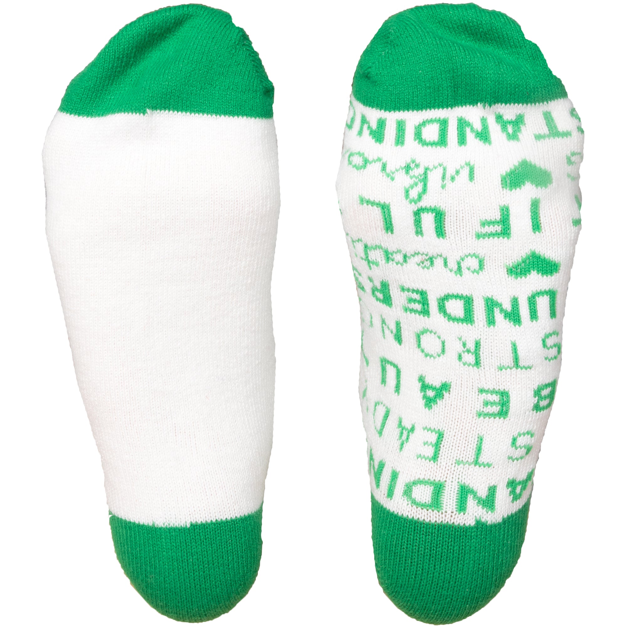 - IN-HOUSE DESIGN: The "May" socks feature a delightful word splash pattern with traits such as "Beautiful," "Strong," "Vibrant," "Understanding," "Creative," and "Steady." The bright green text stands out against the white background, symbolizing the vibrant and caring nature of May-born individuals. This thoughtful design is both stylish and personal, celebrating their positive attributes.