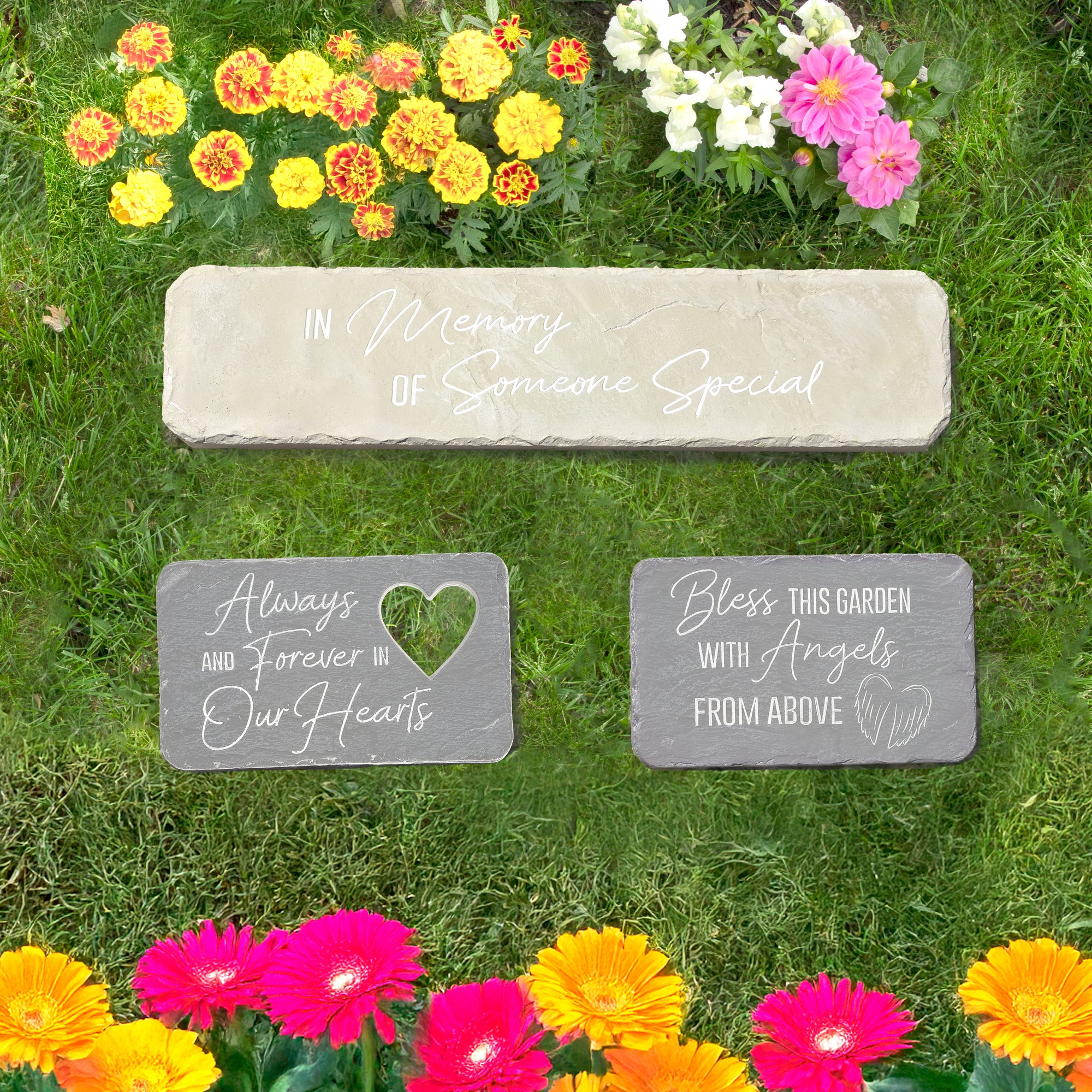 • IN-HOUSE DESIGN: This garden stone features the sentiment "In Memory of Someone Special" beautifully hand-painted in a gentle script, ensuring a touching tribute to lost loved ones. The minimalist and elegant design complements any outdoor setting, providing a peaceful reminder of cherished memories and loved ones who have passed.