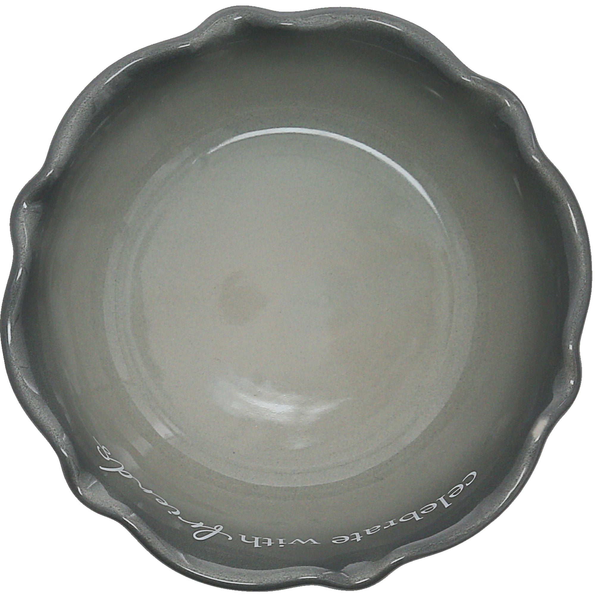 - IN-HOUSE DESIGN: You will see cursive written "Celebrate With Friends" wrapping around the interior brim of the mortar. The ribbed exterior has a simplistic ombre gray & tan pattern. The small light wood spoon fits comfortably into anyone's hand.