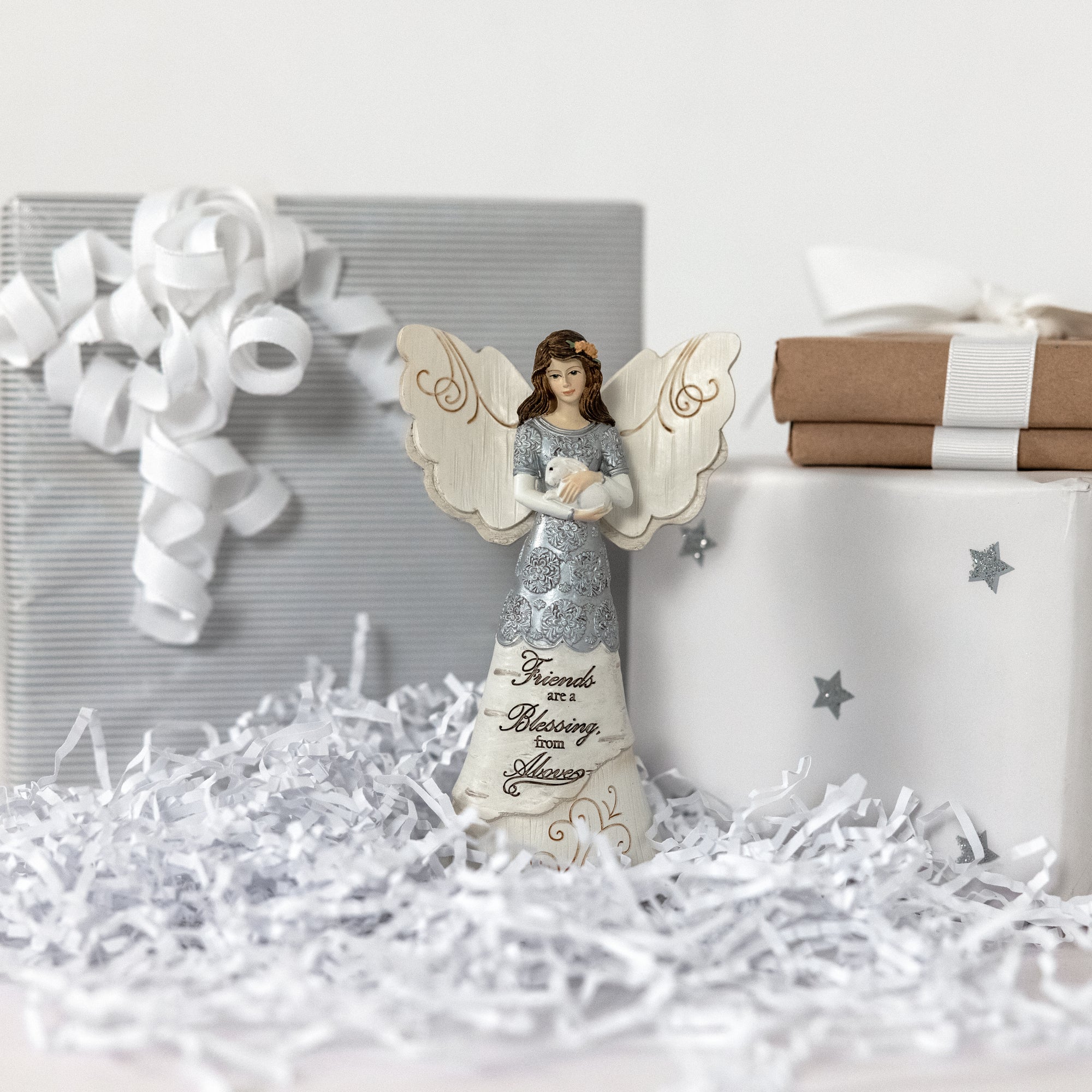 - IN-HOUSE DESIGN: "Friends Are A Blessing From Above" text is debossed and hand-painted onto the front of the angel, alongside an intricate silver design, and bunny.