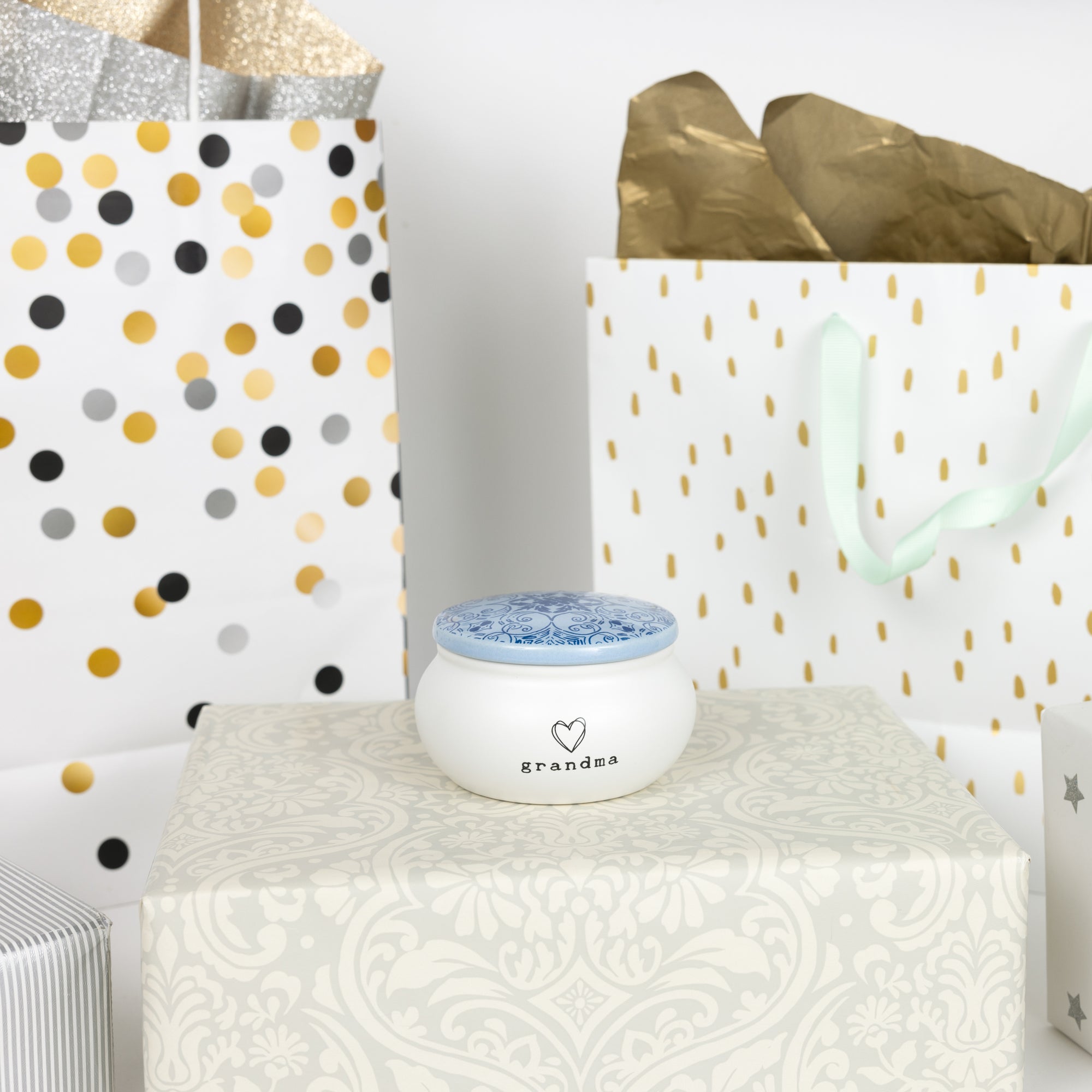 - IN-HOUSE DESIGN: The dish's lid has a simplistic "Grandma" decal and a double-line heart. At the same time, the interior features a butterfly, accompanied by a "You Are Amazing” sentiment that hugs the bottom of the jar.