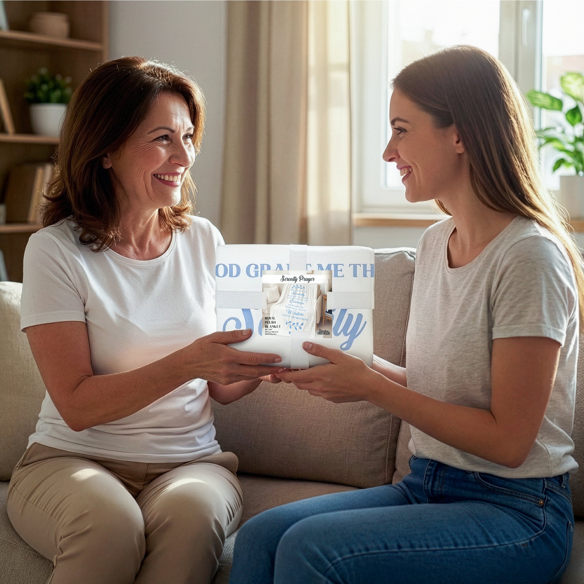 - CARE INSTRUCTIONS: Machine wash gentle with like colors; tumble dry low or line dry to maintain softness. Do not bleach. Artwork remains vibrant through proper care. Packaged with ribbon wrap and slit cards for a comforting, gift-ready presentation.